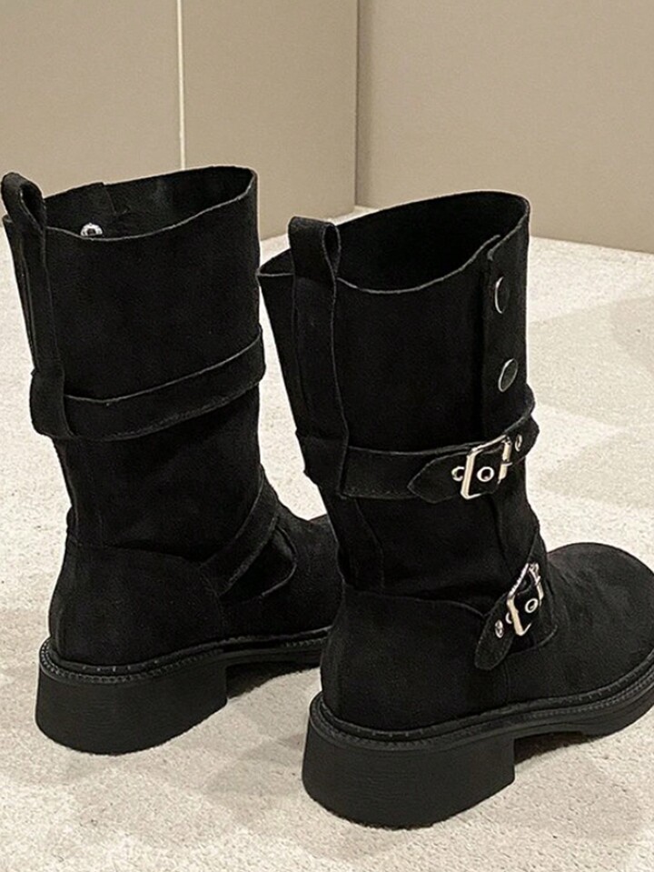 Goth Women's Button Embellish Metal Decor Simple Casual Ankle Boots