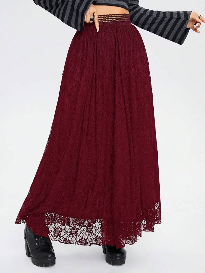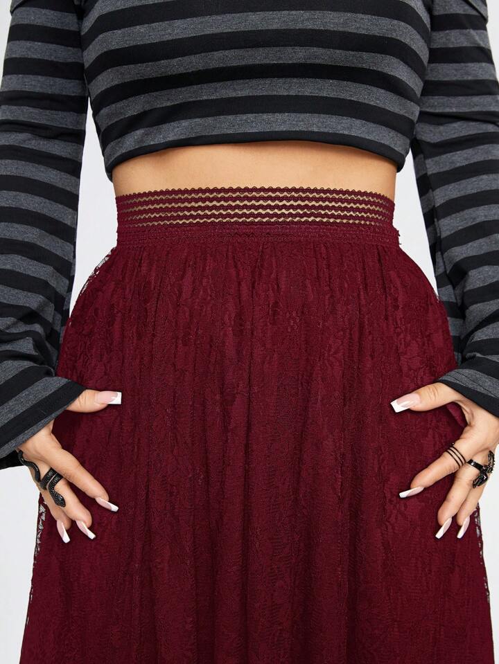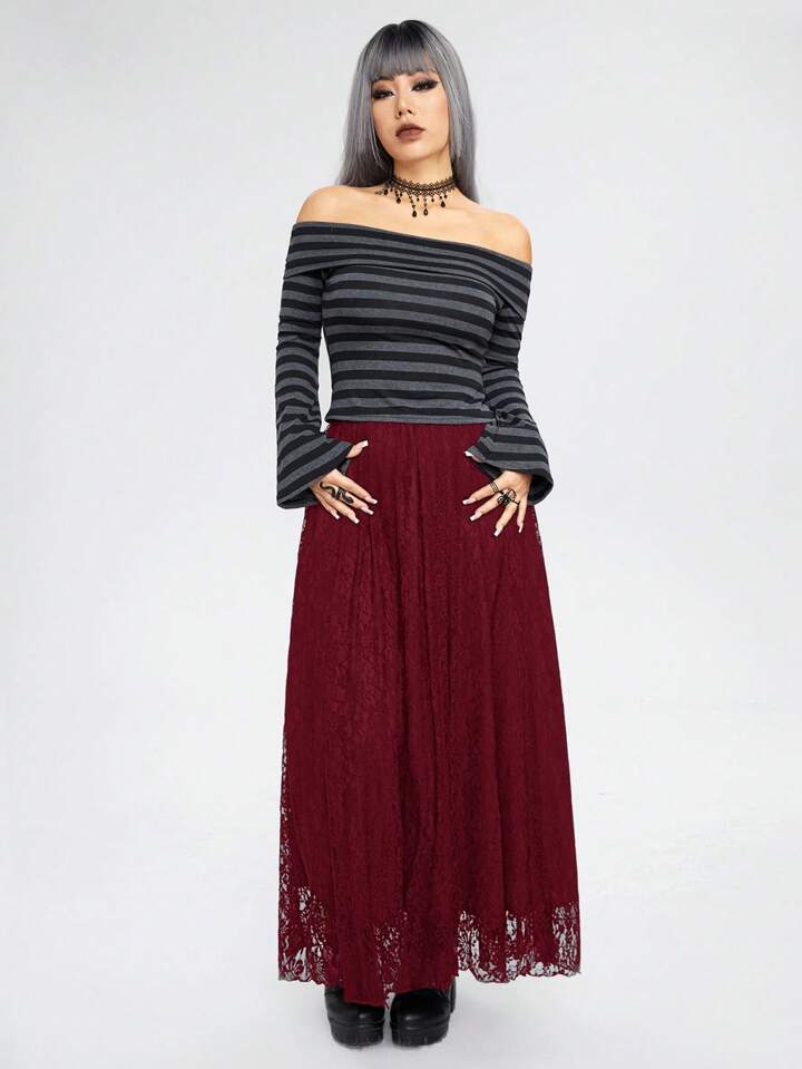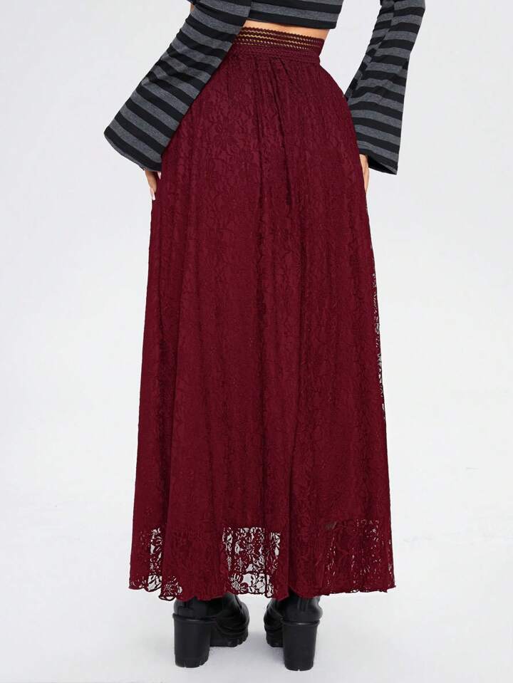Goth Women's Elegant Solid Color Lace Long Skirt, Autumn