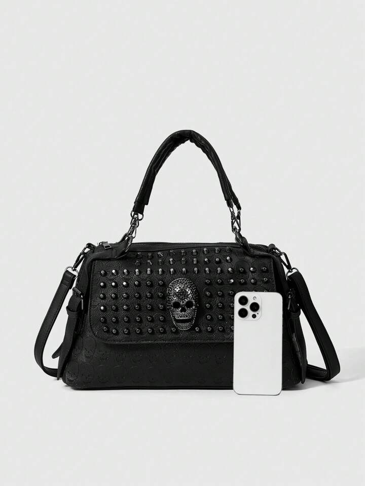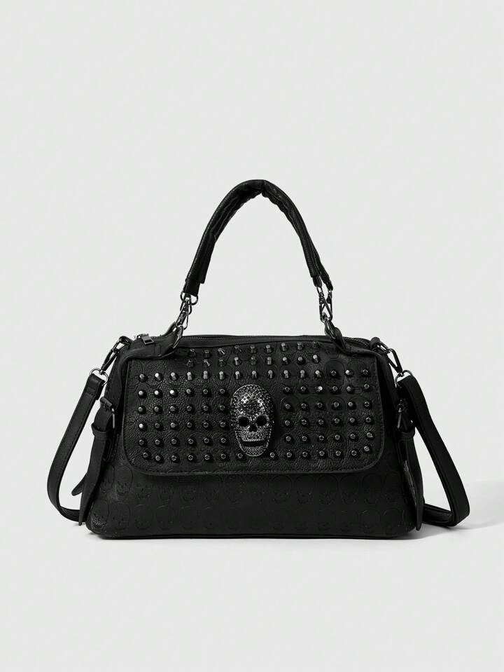 Goth Women's Fashion Punk Skull Rhinestone Decor Shoulder Bag