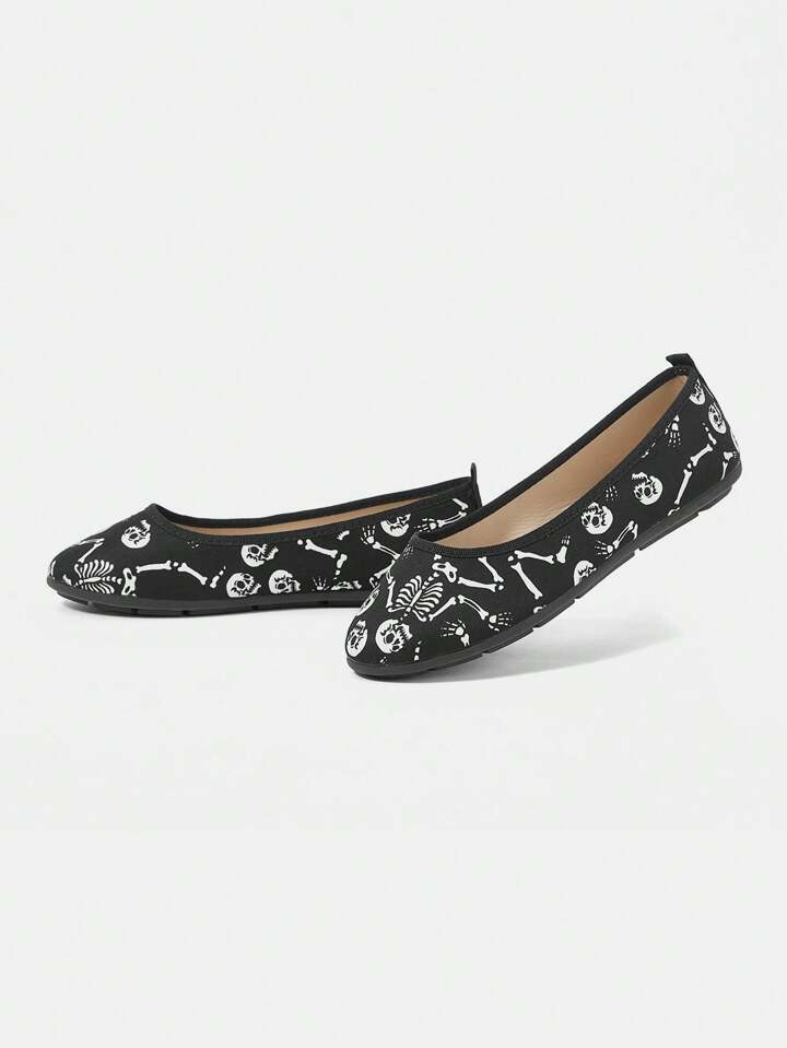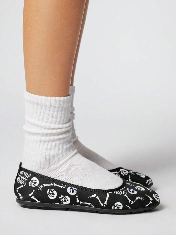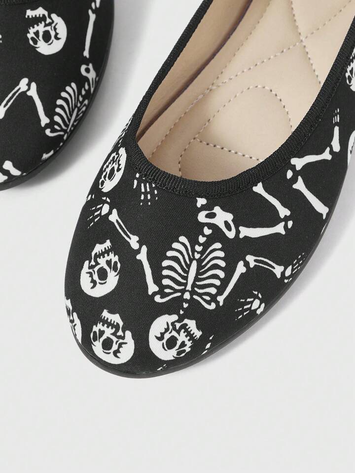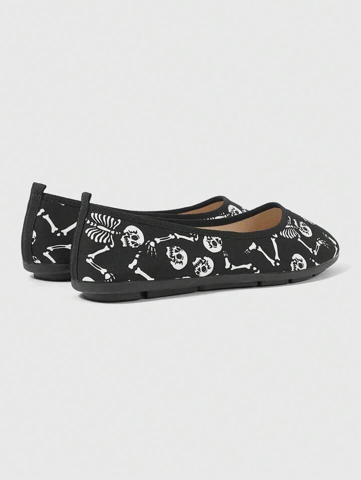 Goth Women's Fashion Skull Print Flat Ballet Flats