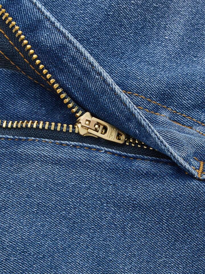 Goth Women's Floral Embroidery Frayed Hem Denim Skirt, School