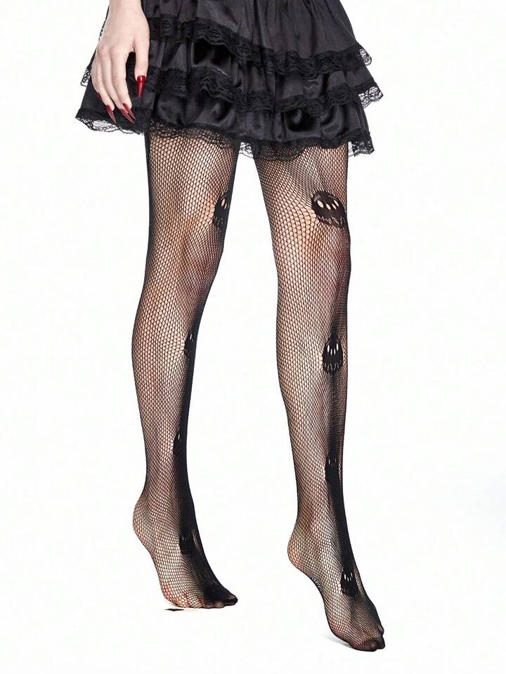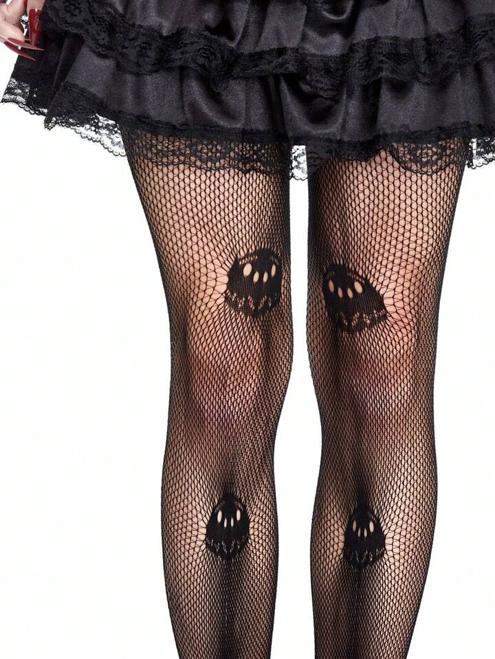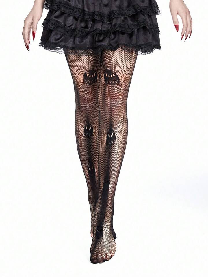 Goth Women's Ghost Pattern Fashionable Pantyhose, Suitable For Pairing With Dresses