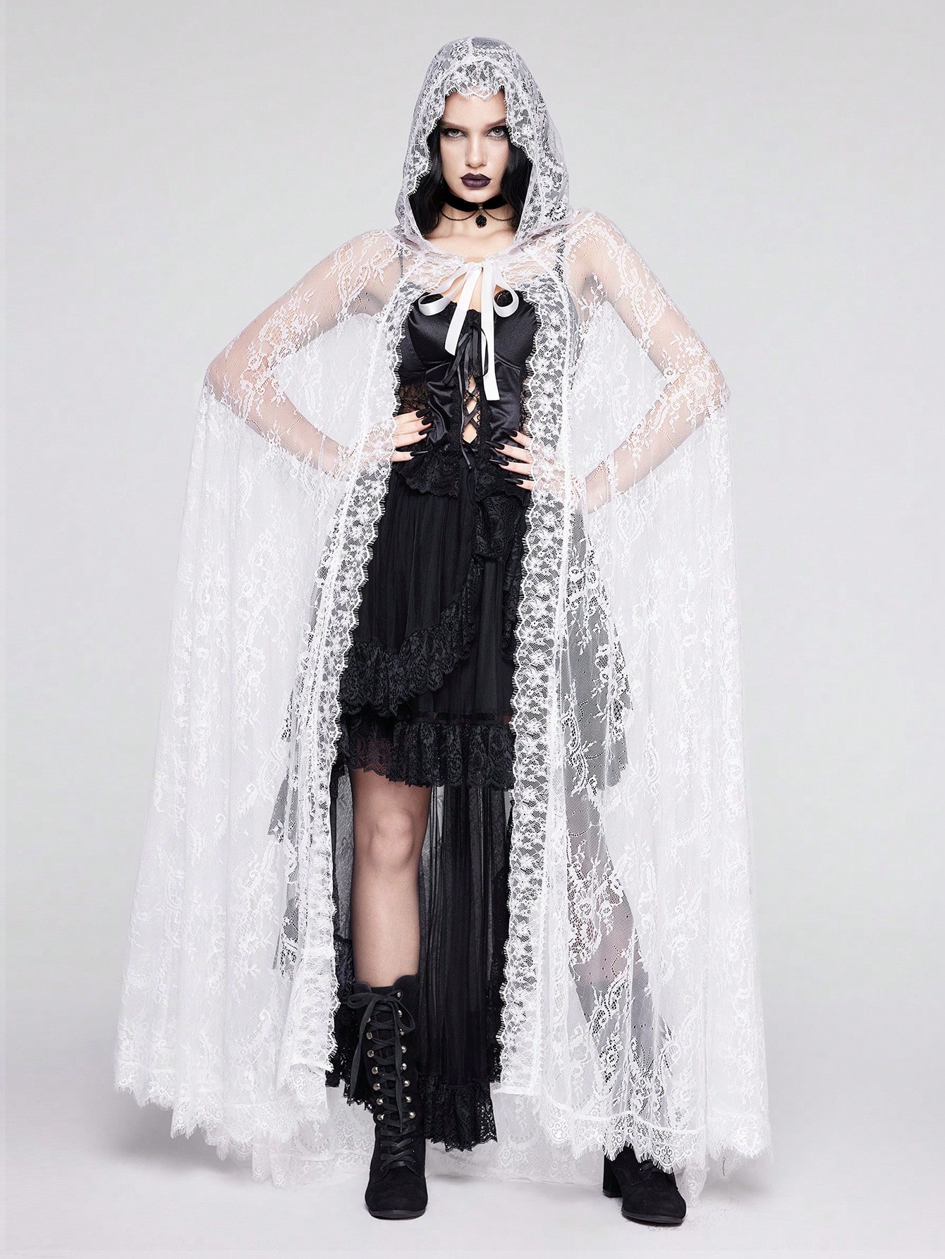 Goth Women's Lace Hooded Oversized Cape Regular Jacket