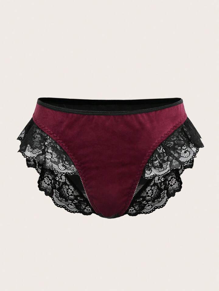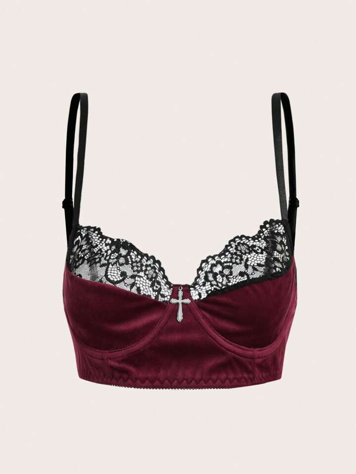 Goth Women's Lace Splice Velvet Bra And Panties Set
