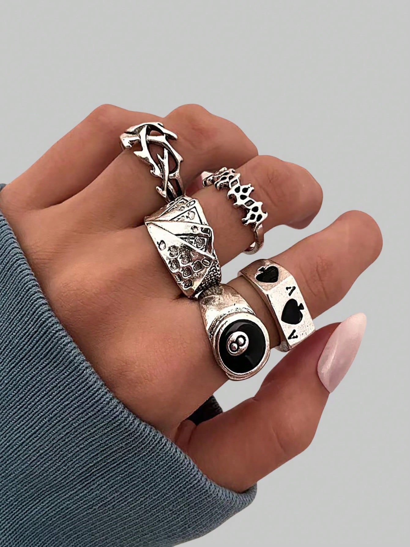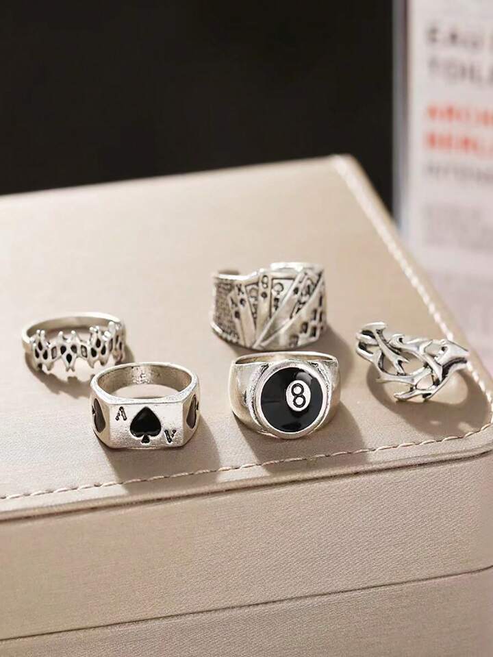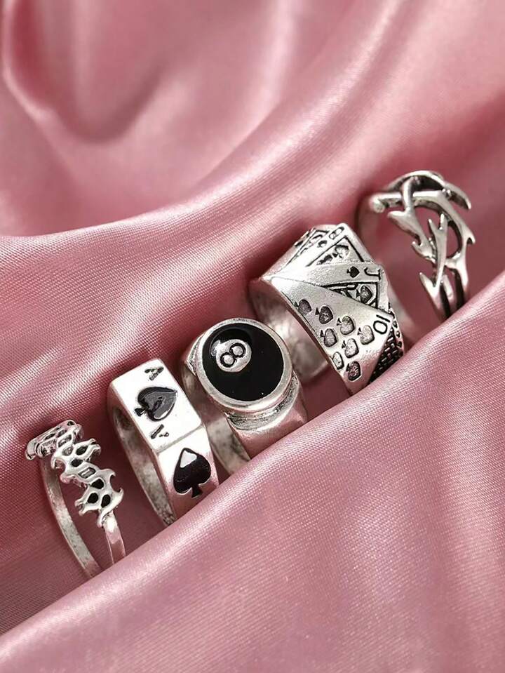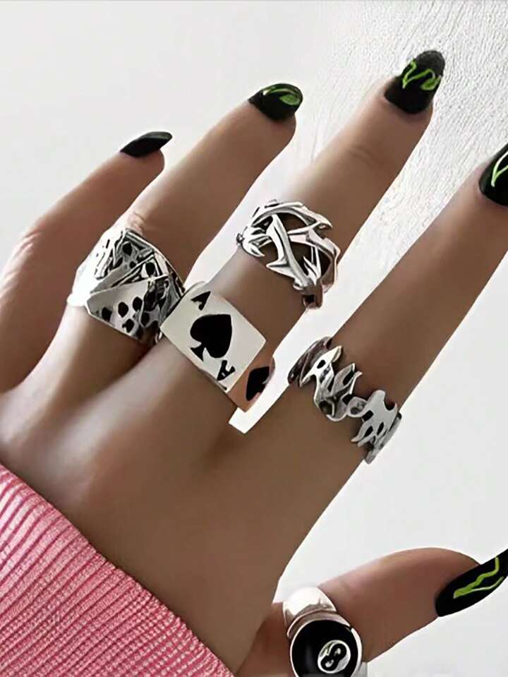 Goth Women's Personalized Poker Card Ring Set