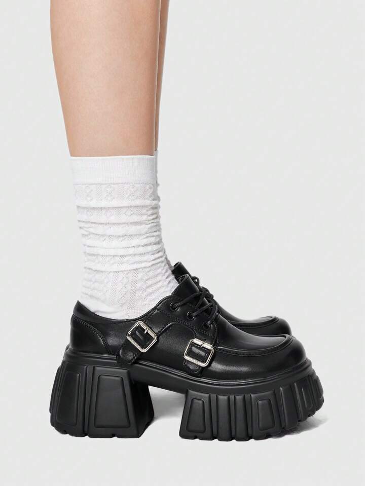 Goth Women's Solid Color Front Tie Casual Wedge & Platform Flats