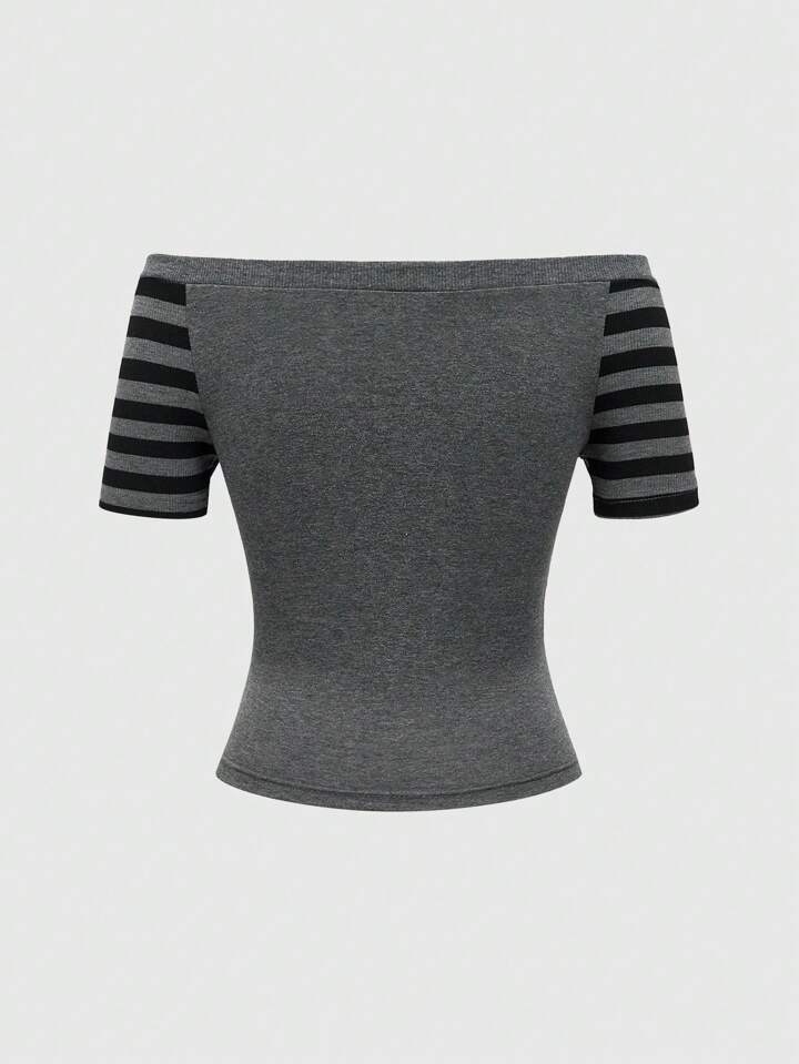 Goth Women's Summer Letter Skull Print Off Shoulder Short Sleeve Casual T-Shirt