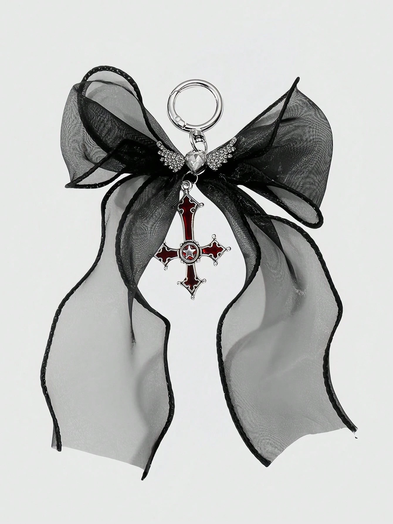 Goth Y2K Stylish Mesh Bow Cross Heart Keychain Bag Charm