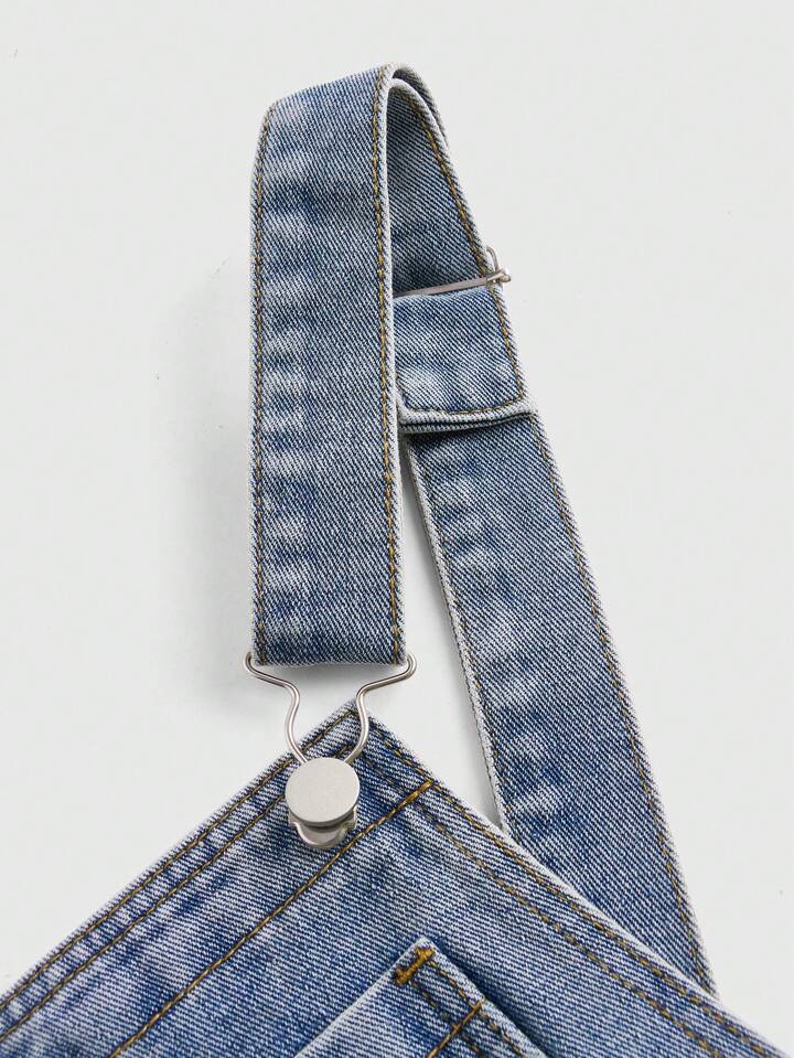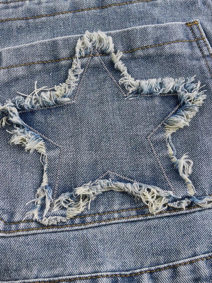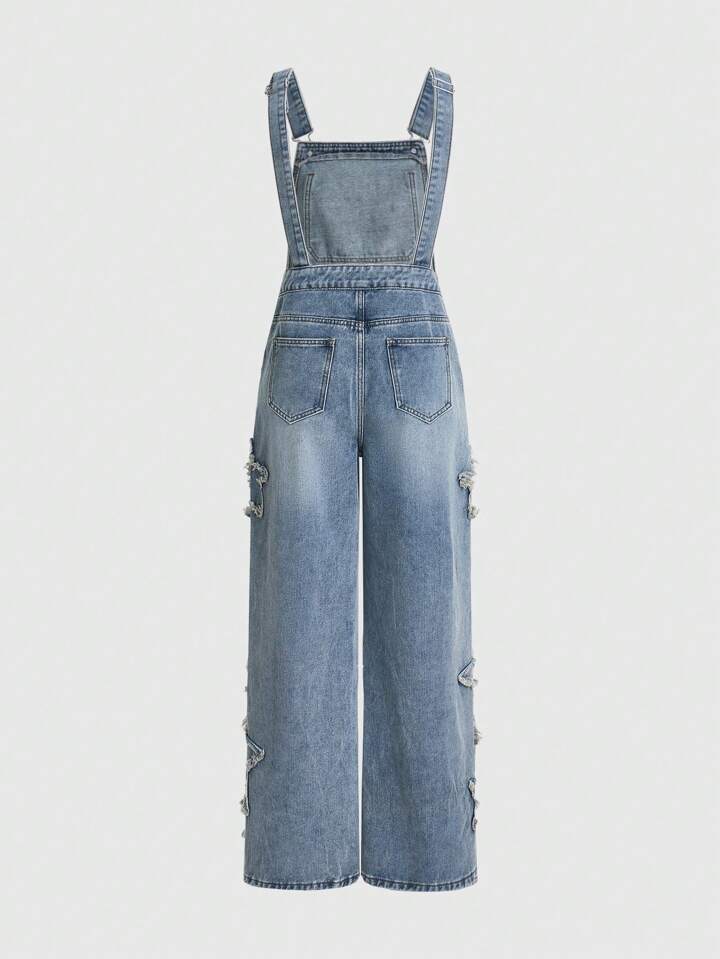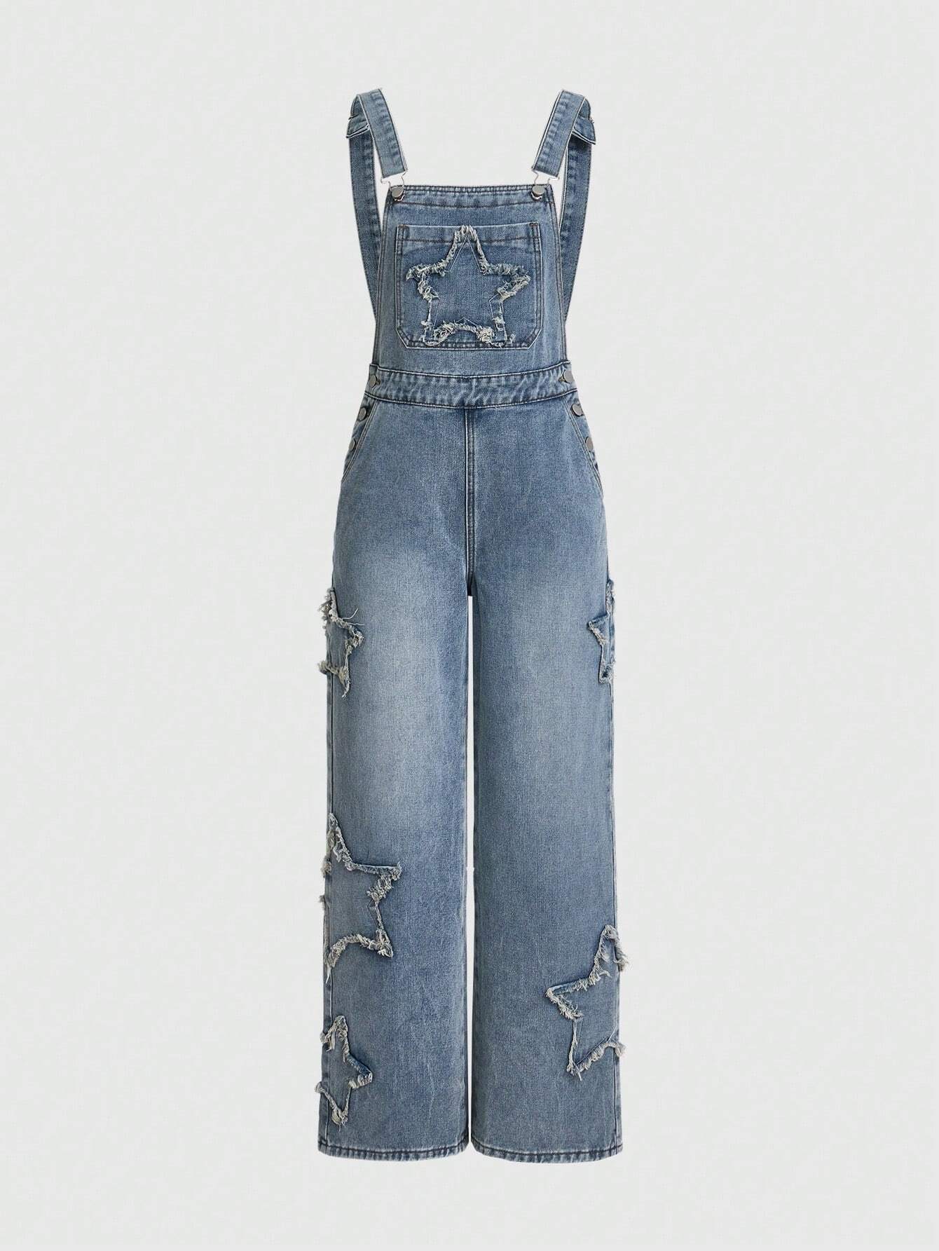 Goth Y2k Women's Loose Straight Suspender Jeans Jumpsuit With Star Patchwork