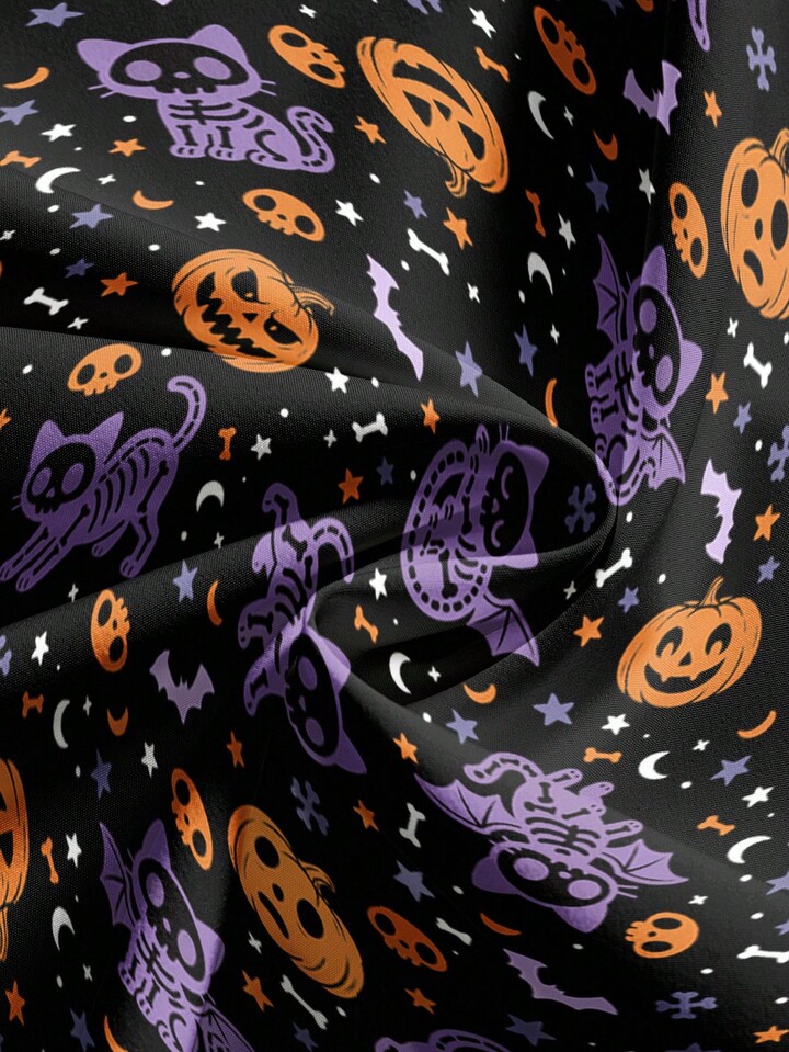 Gothic Dark Mysterious Horror Witch Halloween Pumpkin Skull Cat Bat All-Over Print Loose Wide Leg Plus Size Pants