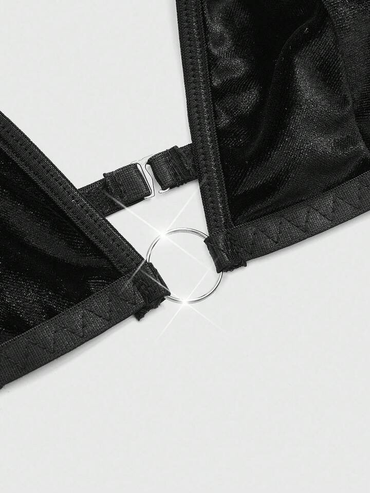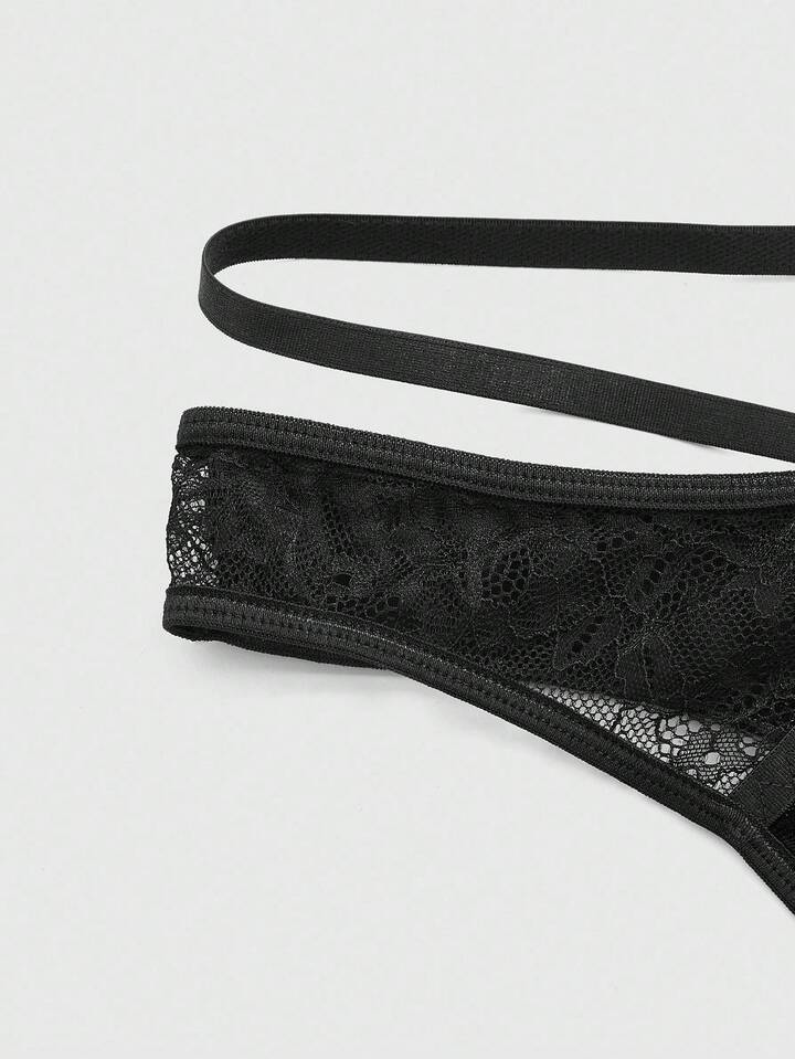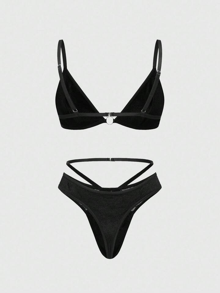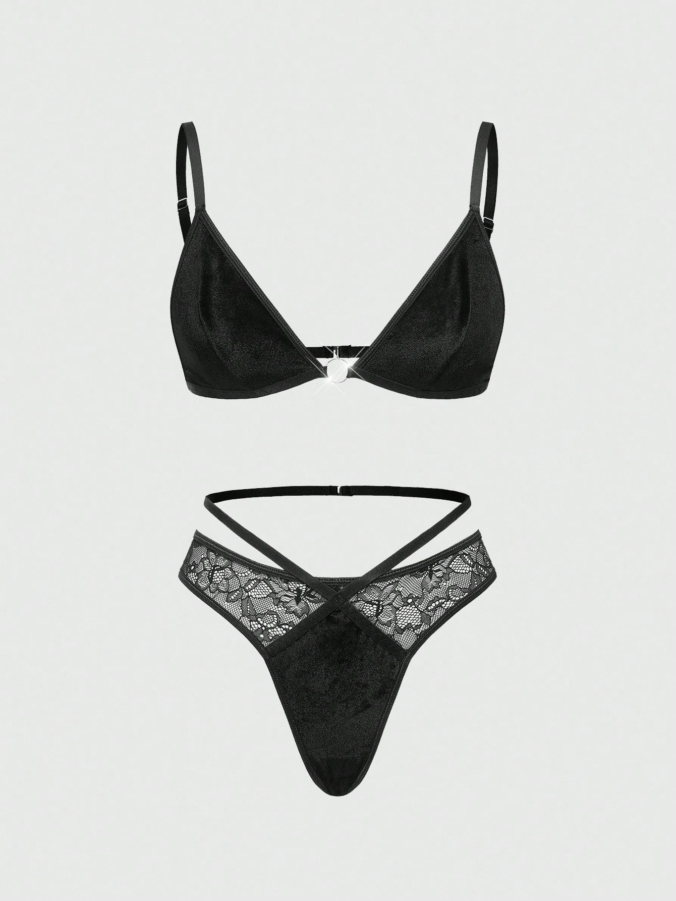 Gothic Dark Style Bralette & Lace Trim Thong Panty Set