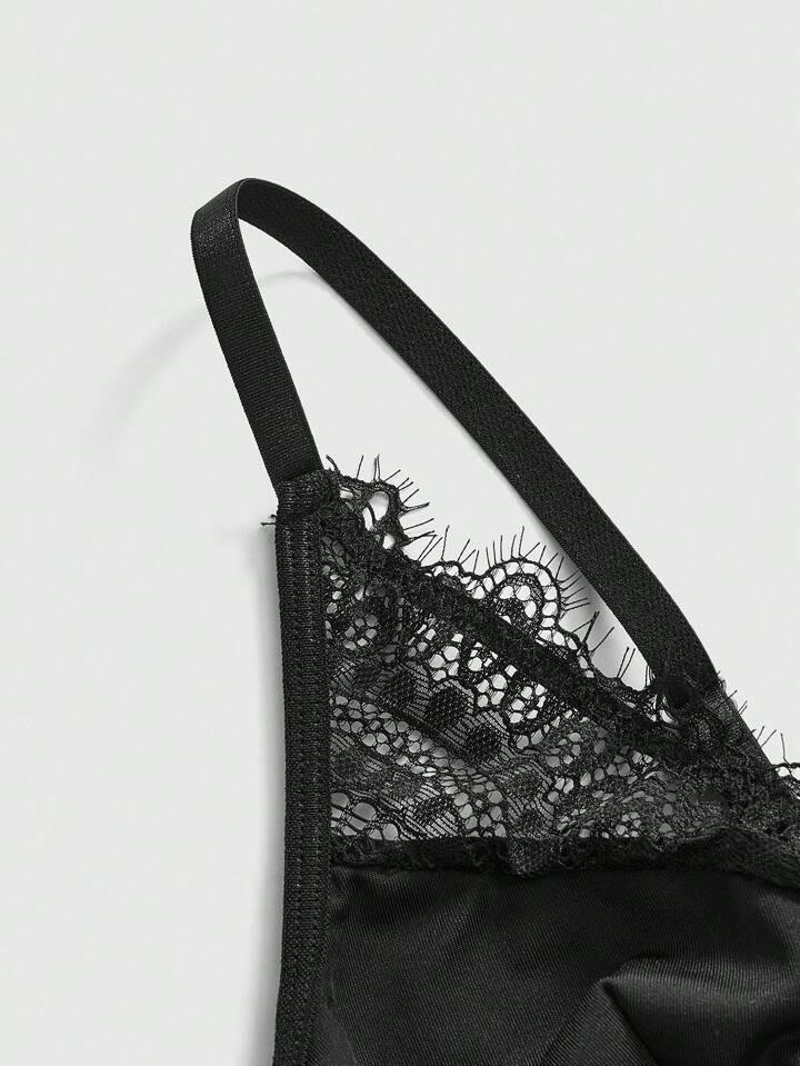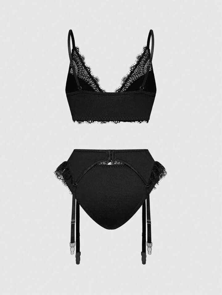 Gothic Lace Triangle Cup Bralette & Panty With Garter Belts, Sexy Lingerie Set