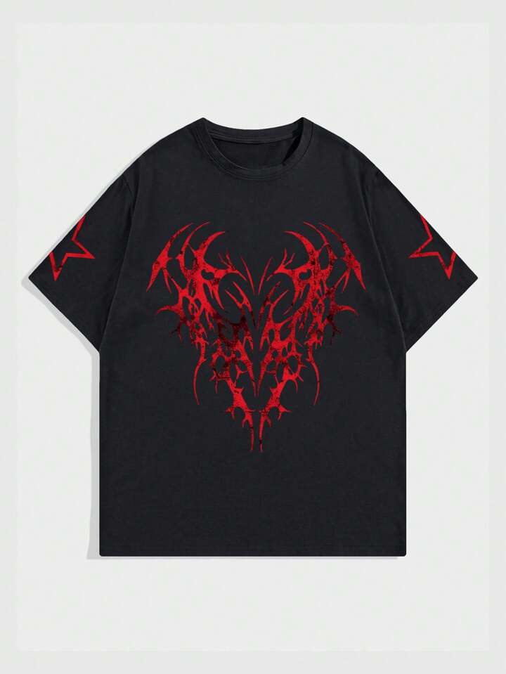 Gothic Print Round Neck Short Sleeve Casual T-Shirt