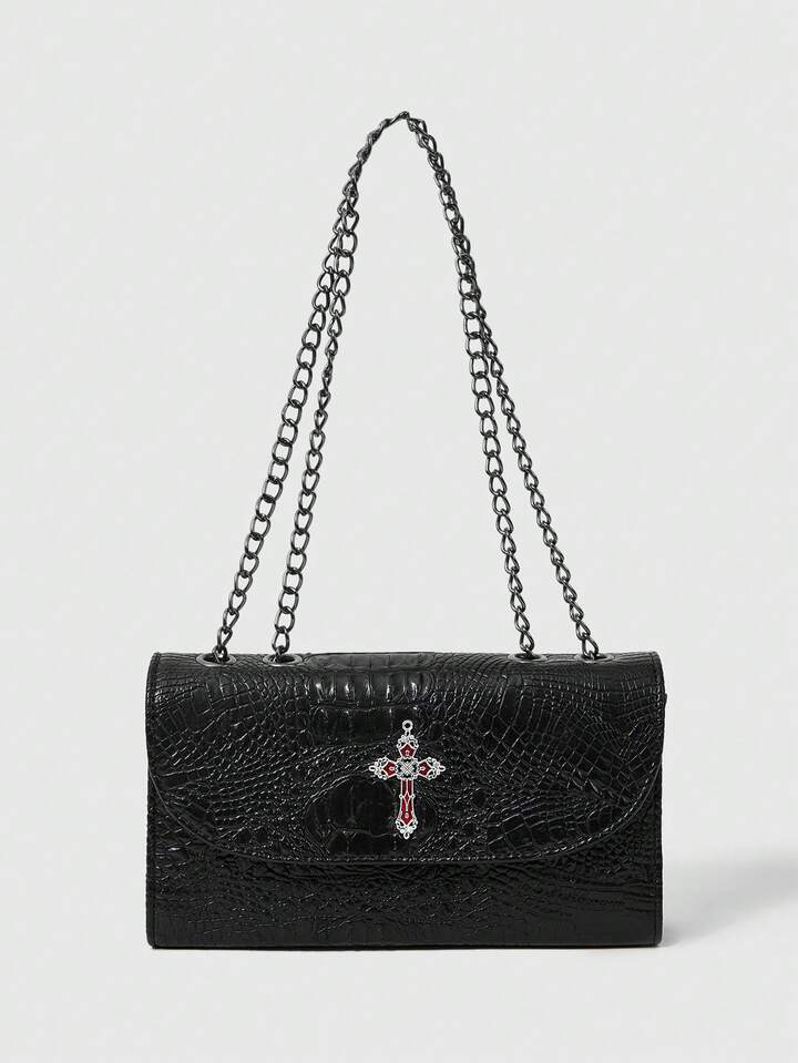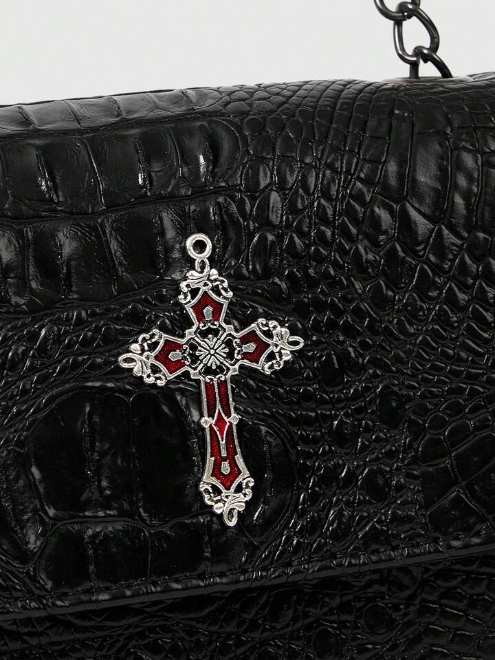 Gothic Punk Faux Crocodile Texture Cross Design Ladies Shoulder Bag