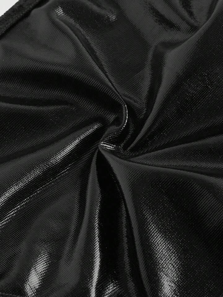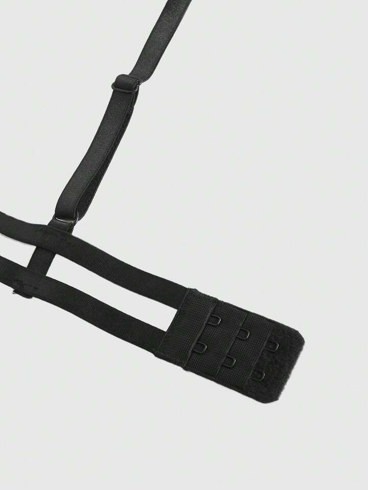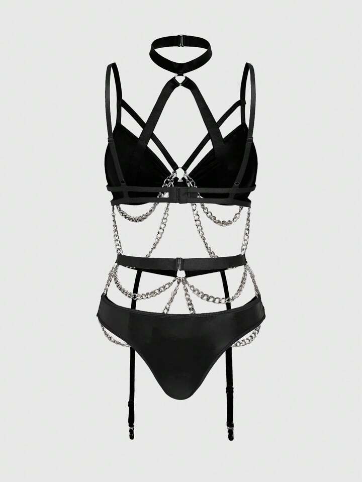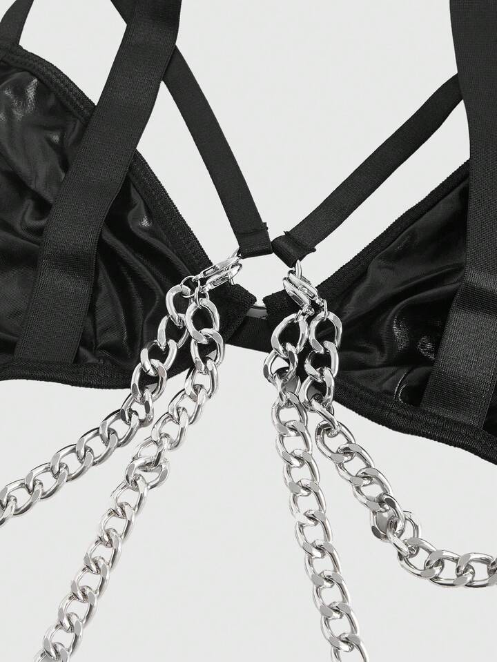 Gothic Punk Style Faux Leather Metal Chain Harness Bralette & Thong Lingerie Set