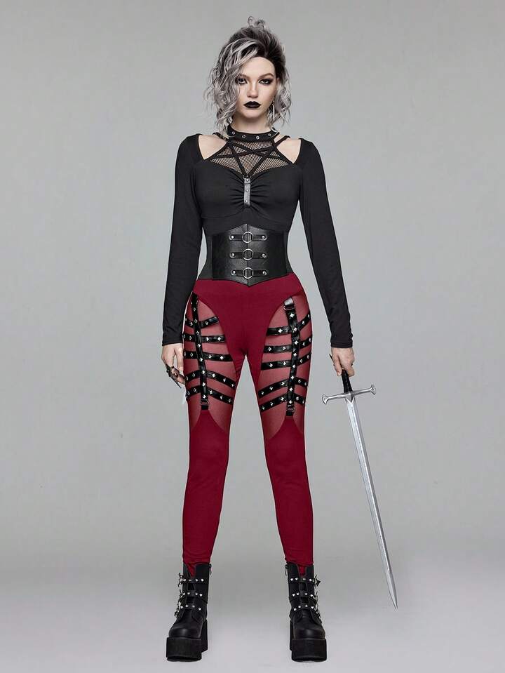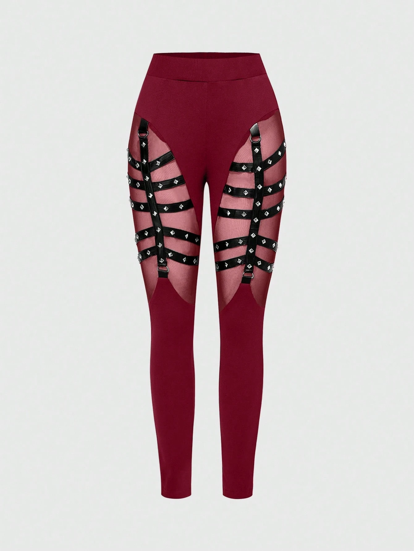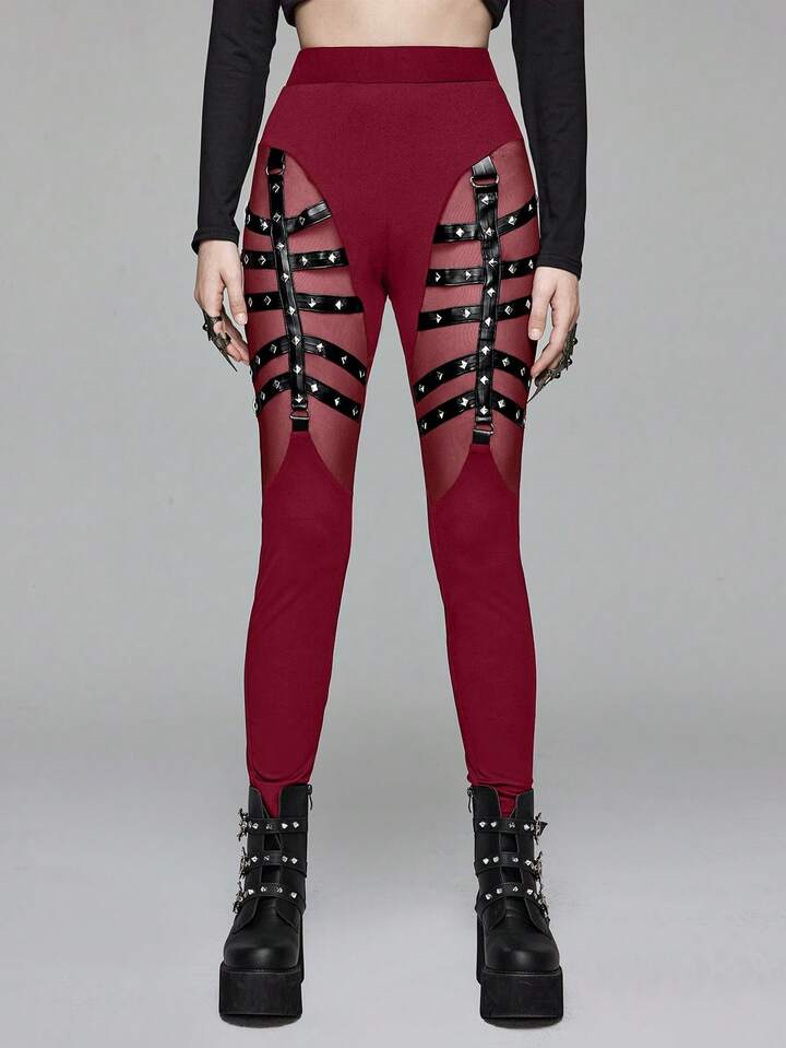 Gothic Punk Style Women's Skinny Leggings With Straps And Rivets