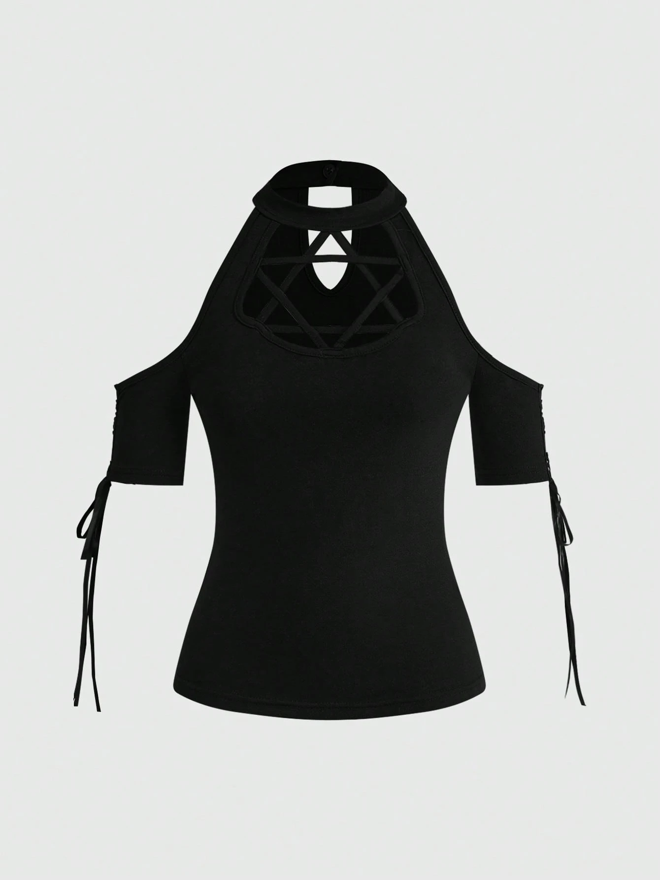 Gothic Retro Palace Style Contrast Color Lace Trim Cross Pendant Heart Pattern Velvet Camisole Tie Strap Dress For Women