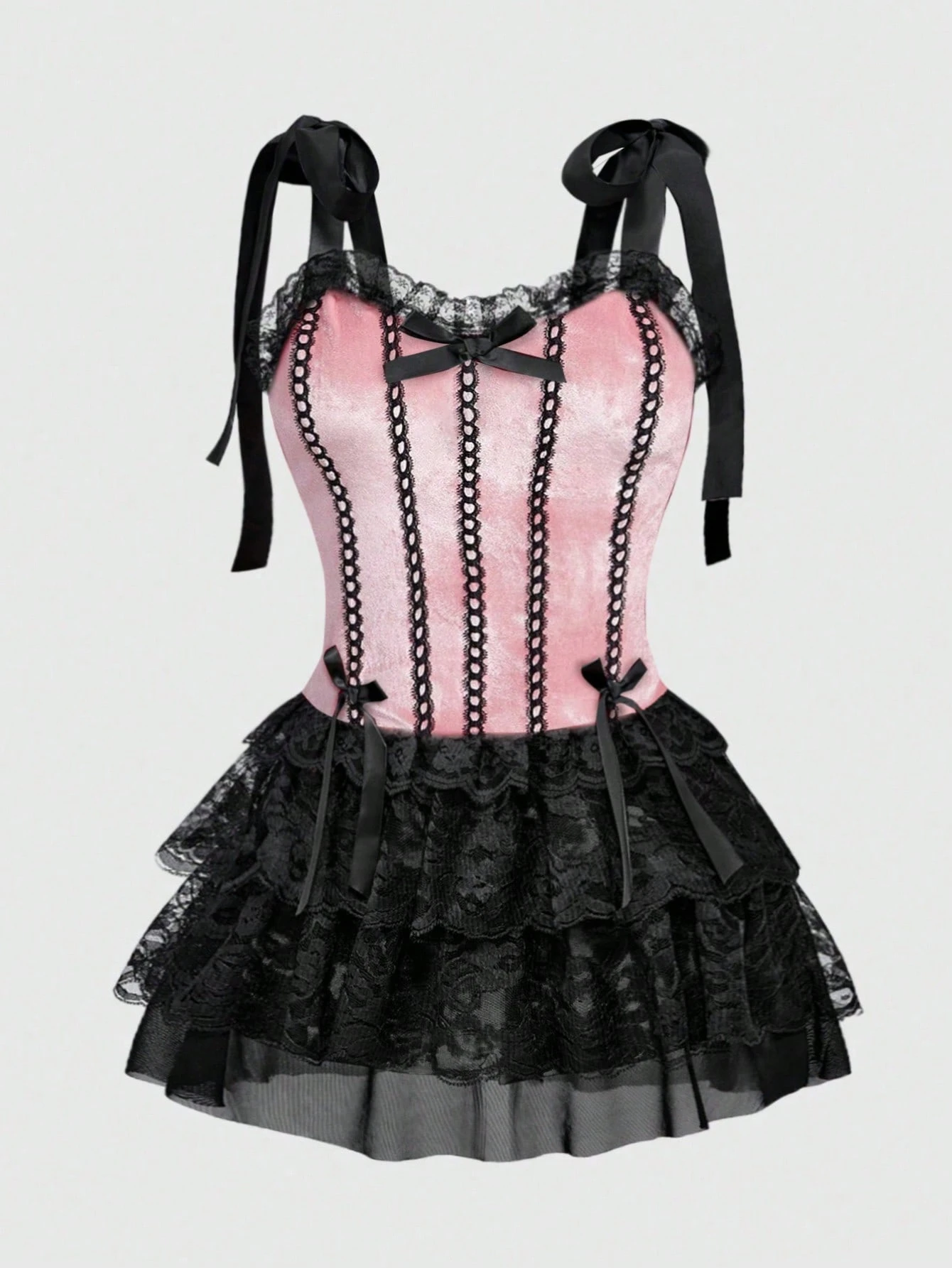 Gothic Retro Palace Style Contrast Color Lace Trim Cross Pendant Plus Size Women Camisole Strap Dress
