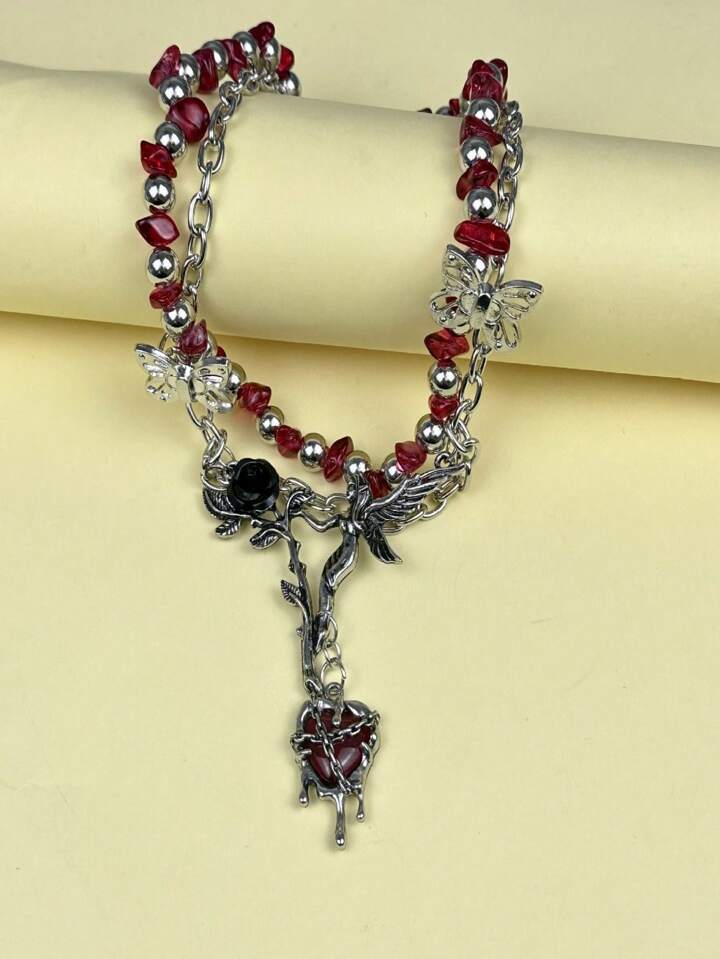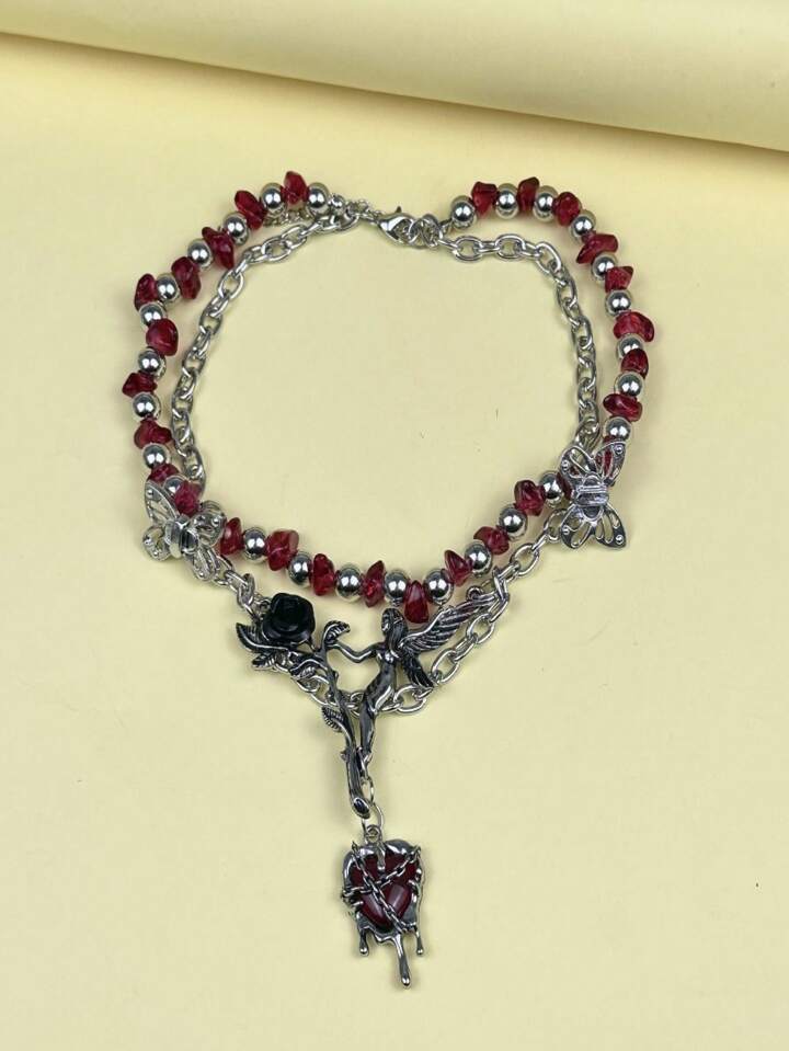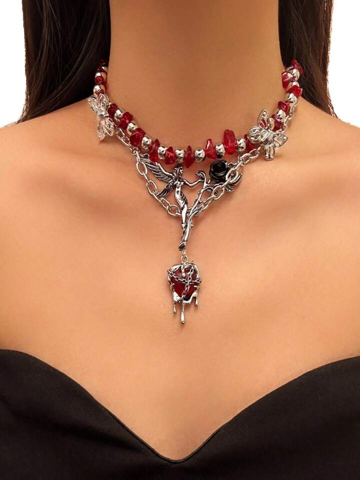 Gothic Rose Angel Lock Chain Pendant Necklace For Women