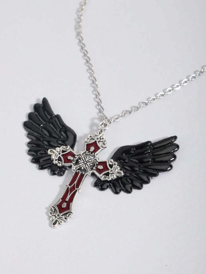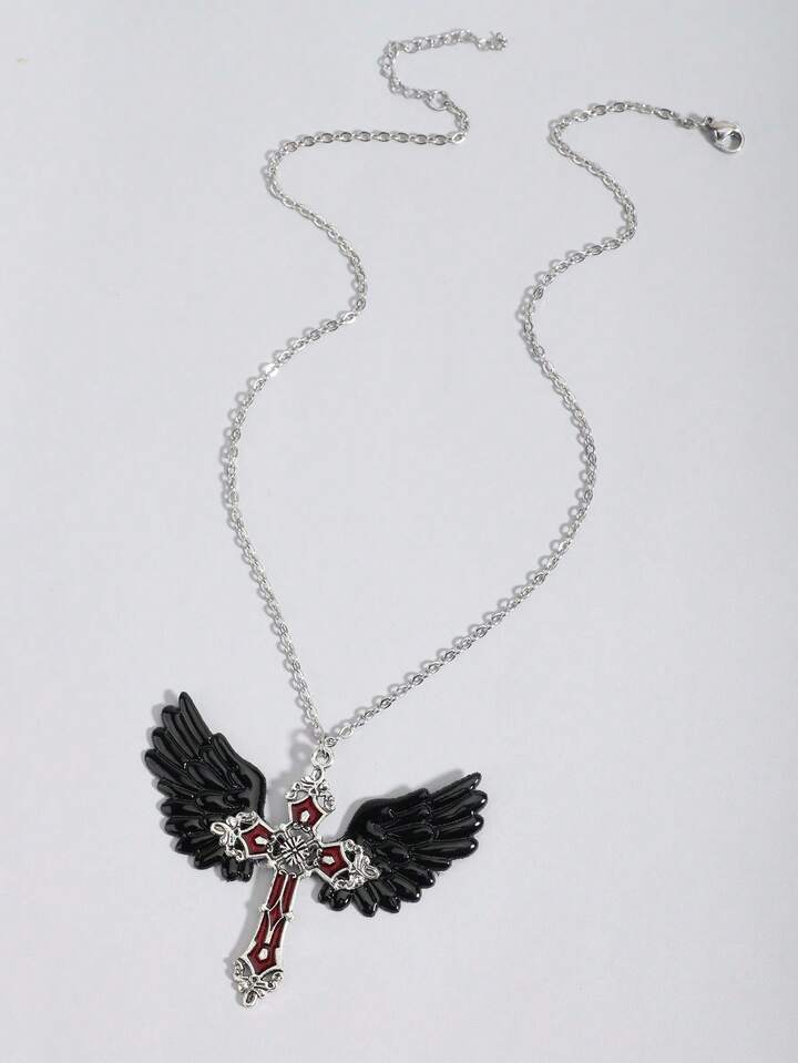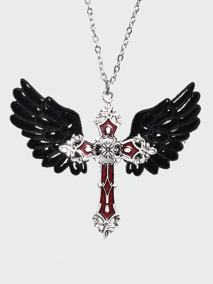 Gothic Skull & Sword Through Heart Pendant Necklace