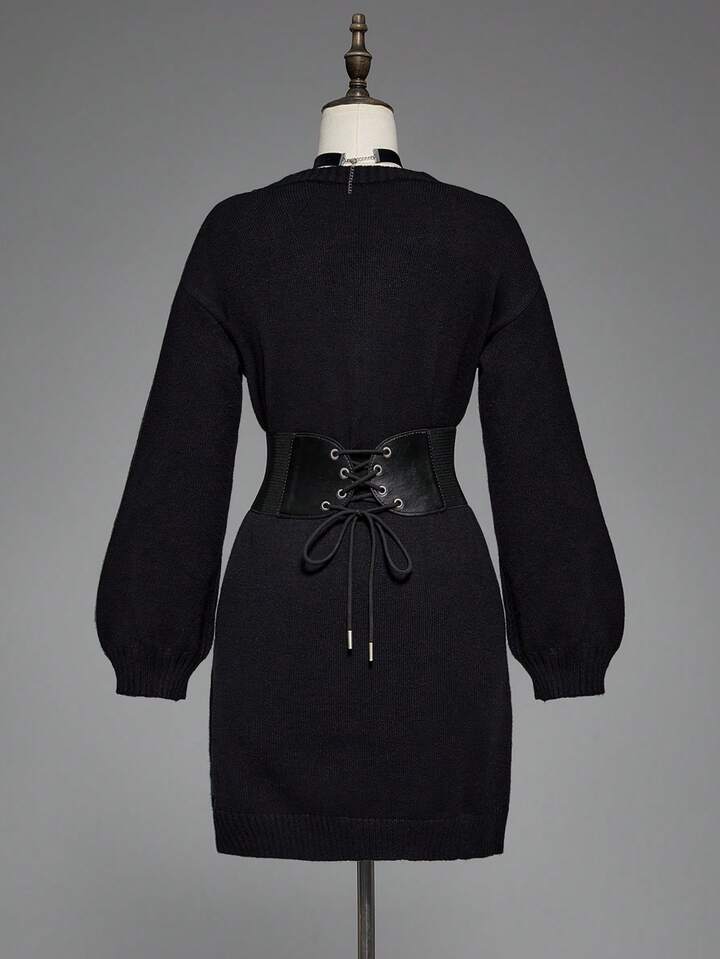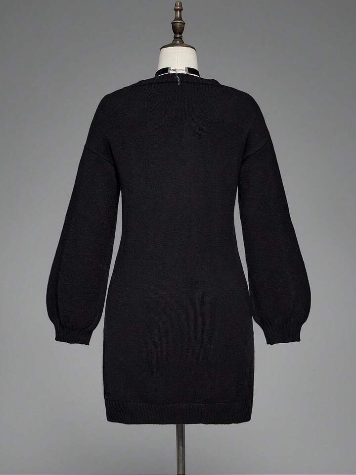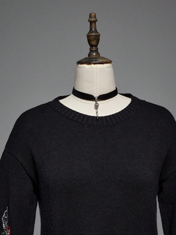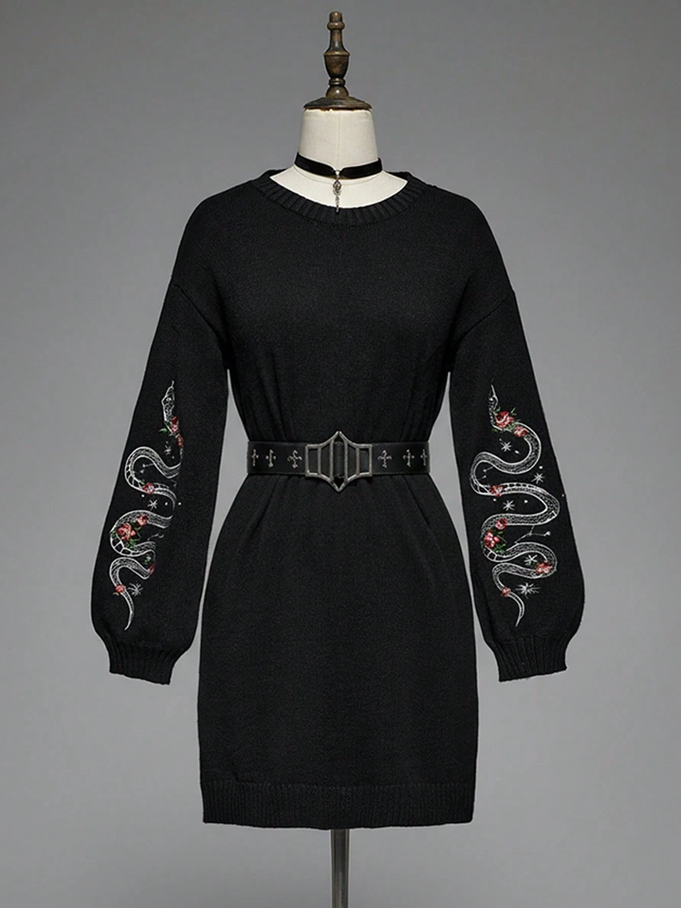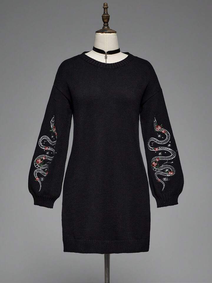 Gothic Snake Embroidery Pullover Sweater Dress For Women