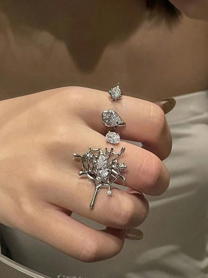 Gothic Spider Web Design Ring Set For Edgy Girls