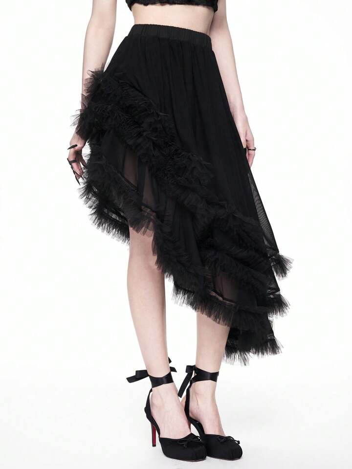 Gothic Style Asymmetrical Mesh Women's Skirt