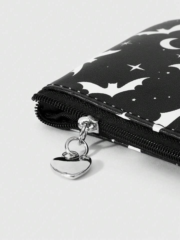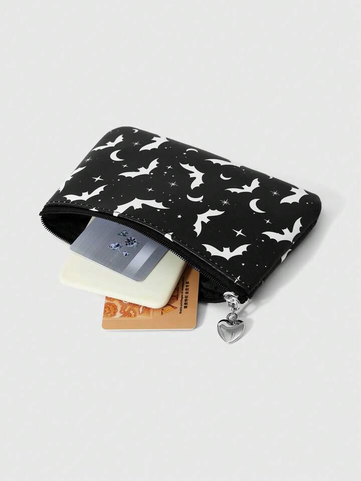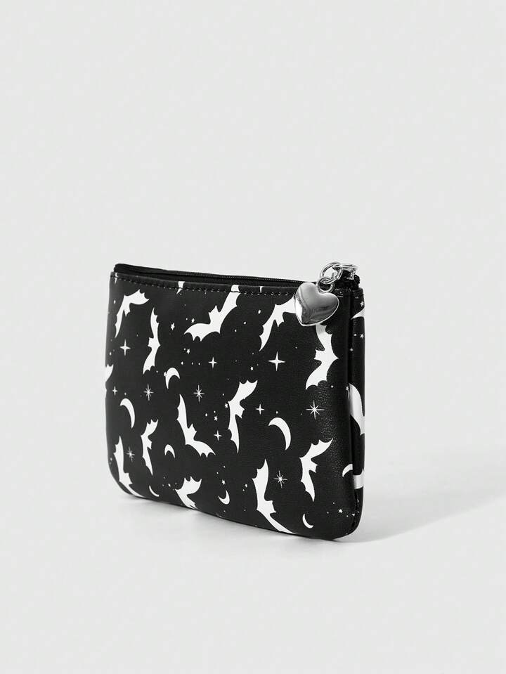 Gothic Style Bat Pattern Thick Leather Large Capacity Cosmetic Bag Coin Purse, Halloween Accessory 323200
