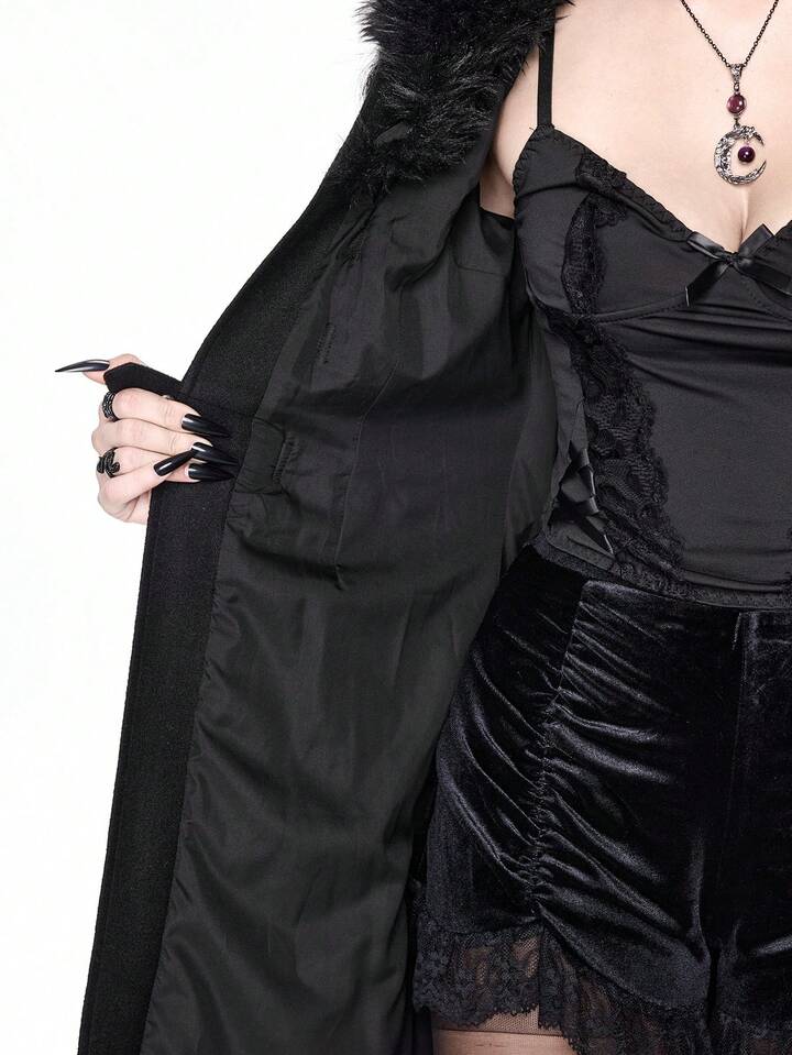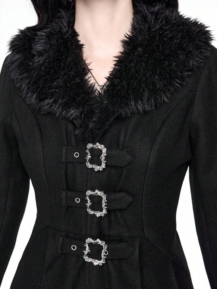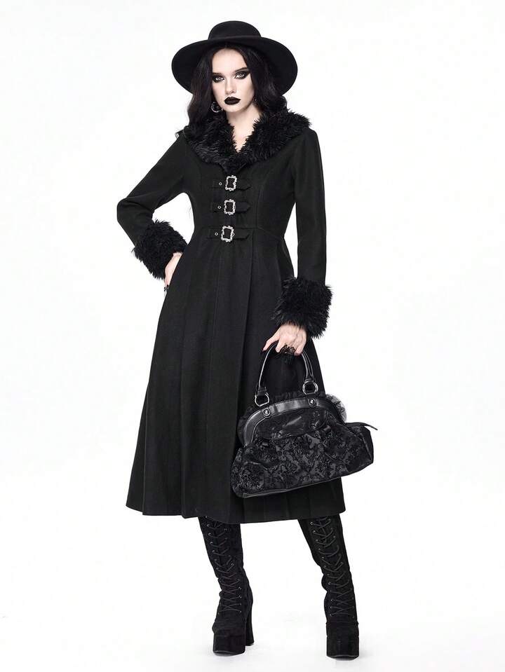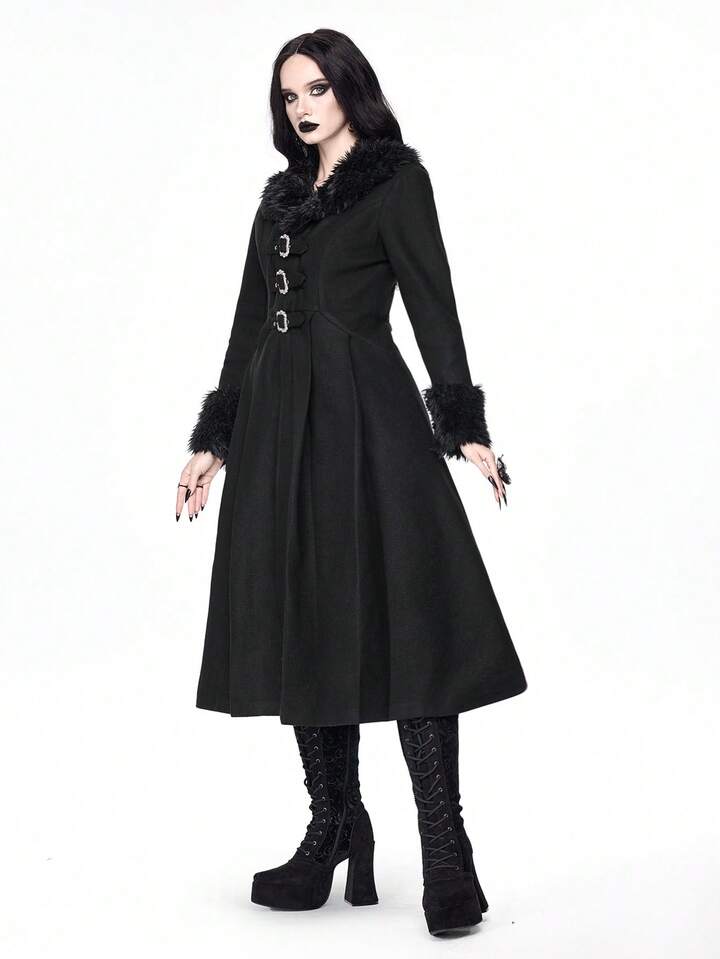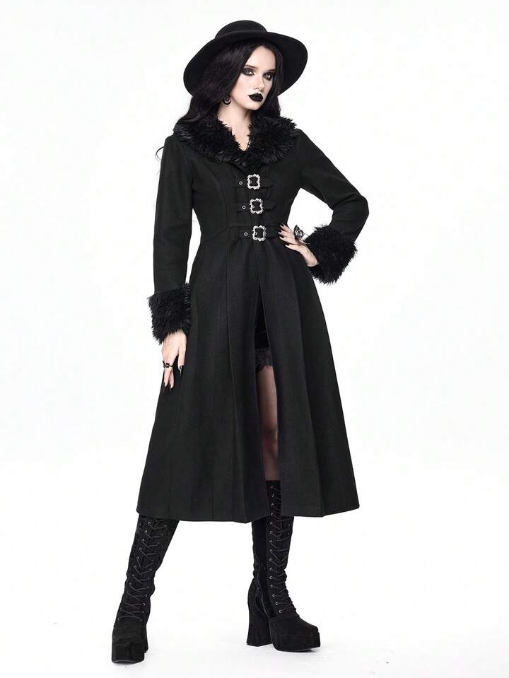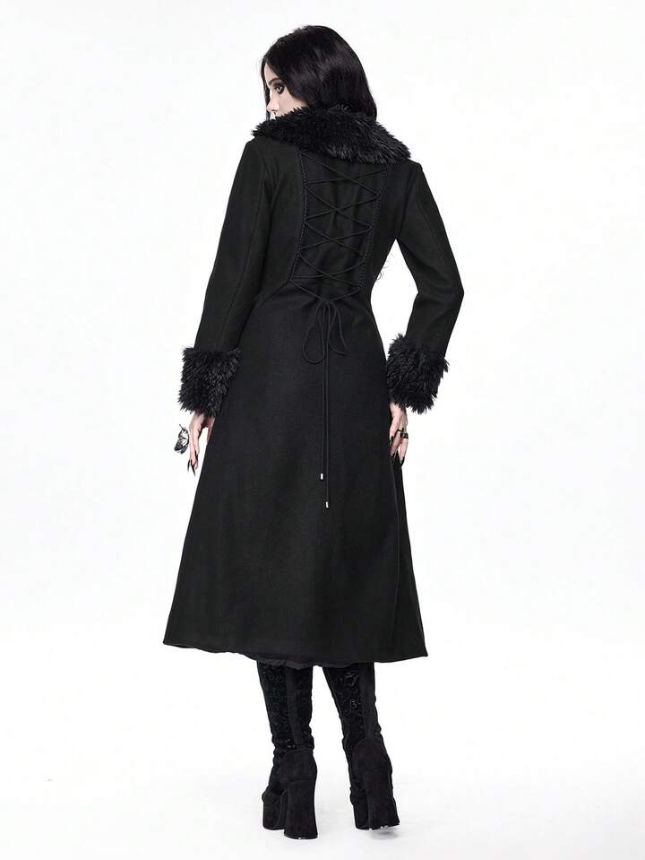 Gothic Style Faux Fur Patchwork Long Coat For Women, Winter