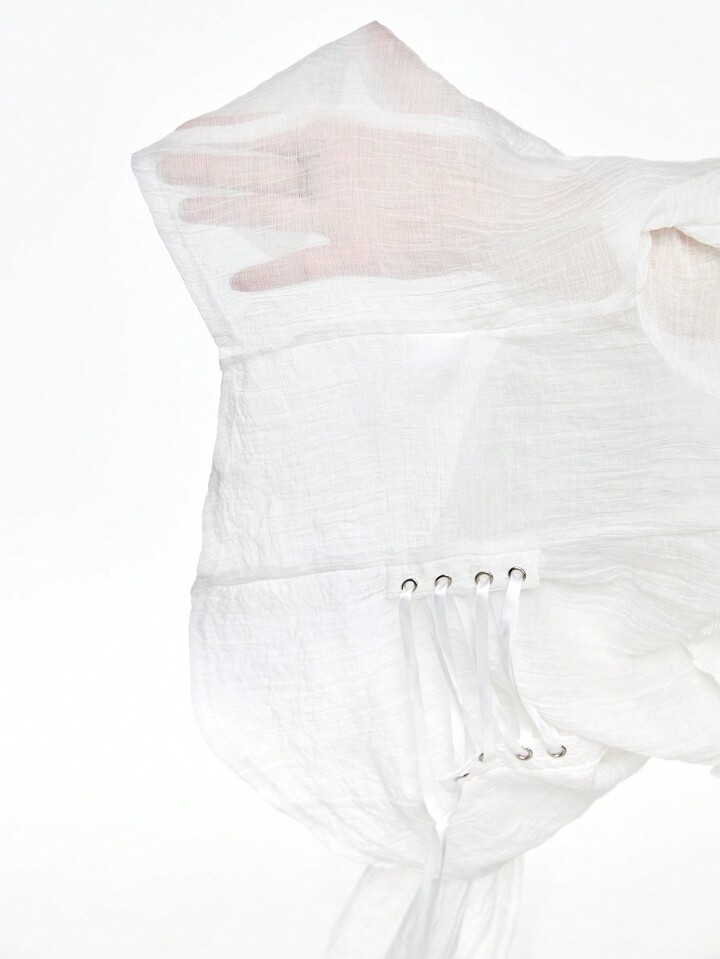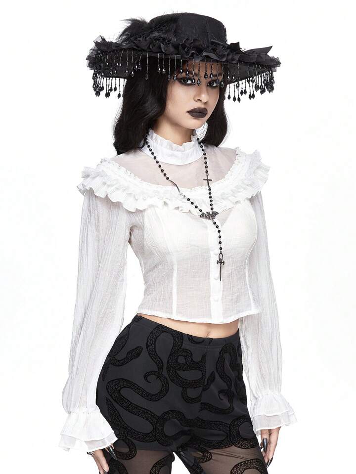 Gothic Style Ruffle Puff Sleeve Sheer Panel Blouse Top For Women