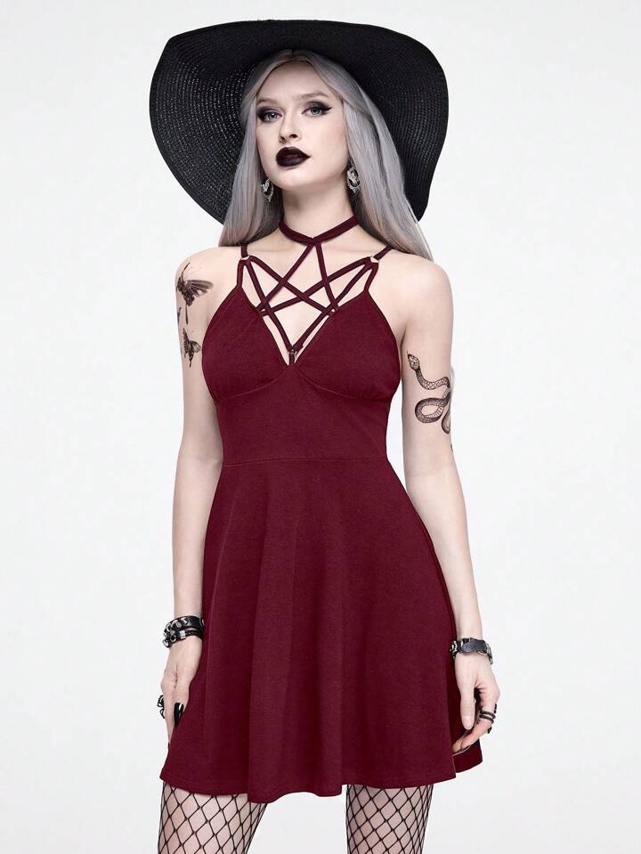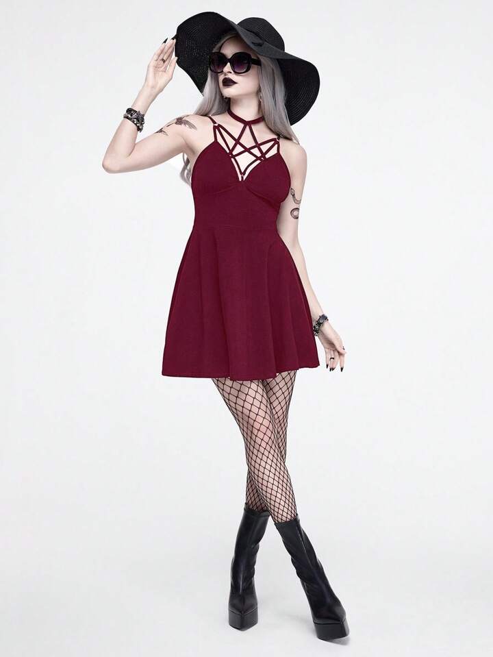 Gothic Style Women's Sexy Solid Color Mini Dress For Summer