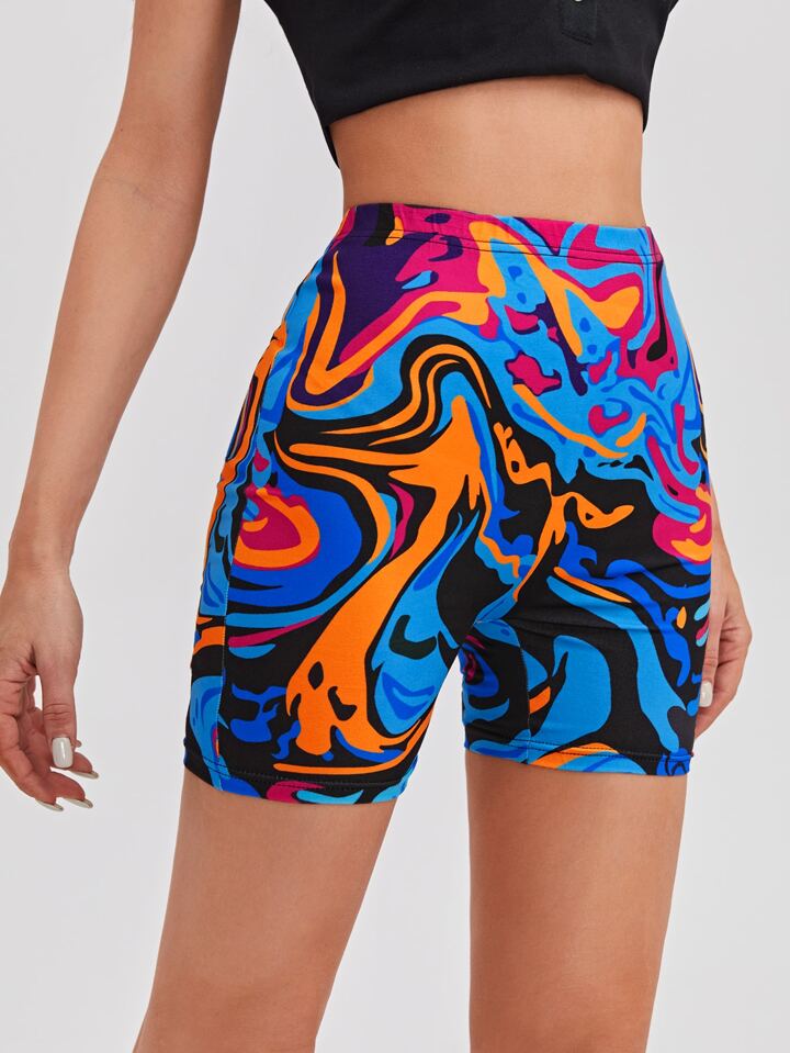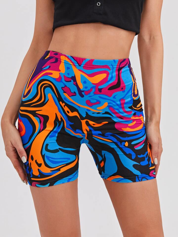 Graphic Print Biker Shorts