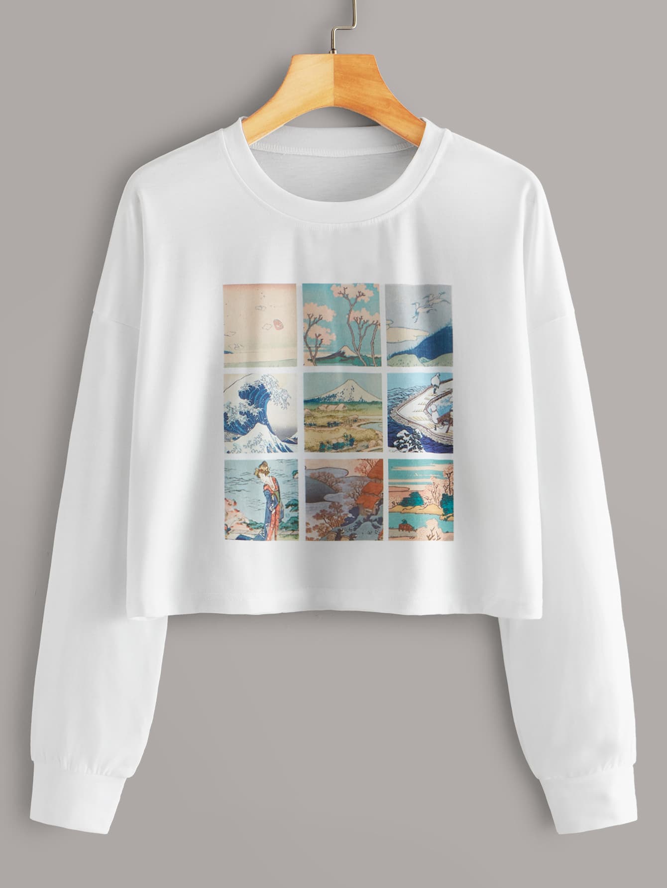 Graphic Print Long Sleeve Crop Tee