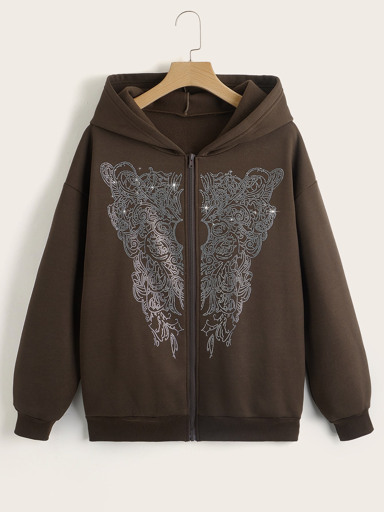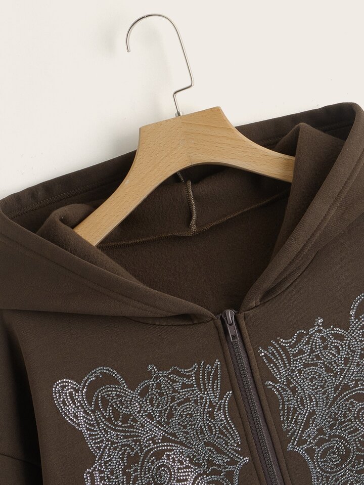 Graphic Rhinestone Zip Up Thermal Hoodie