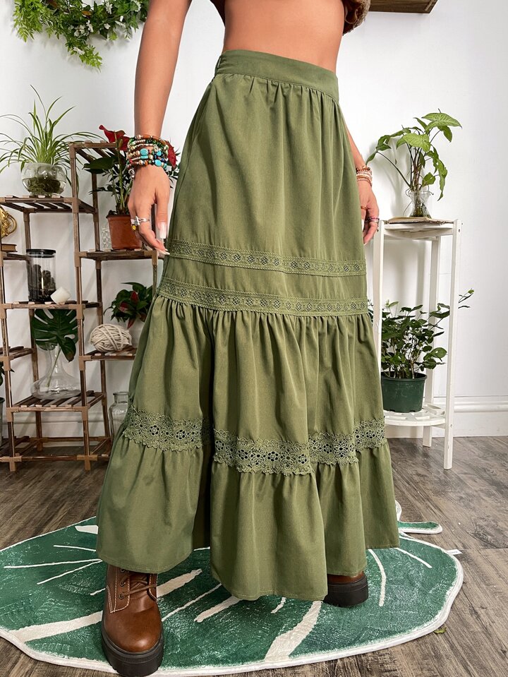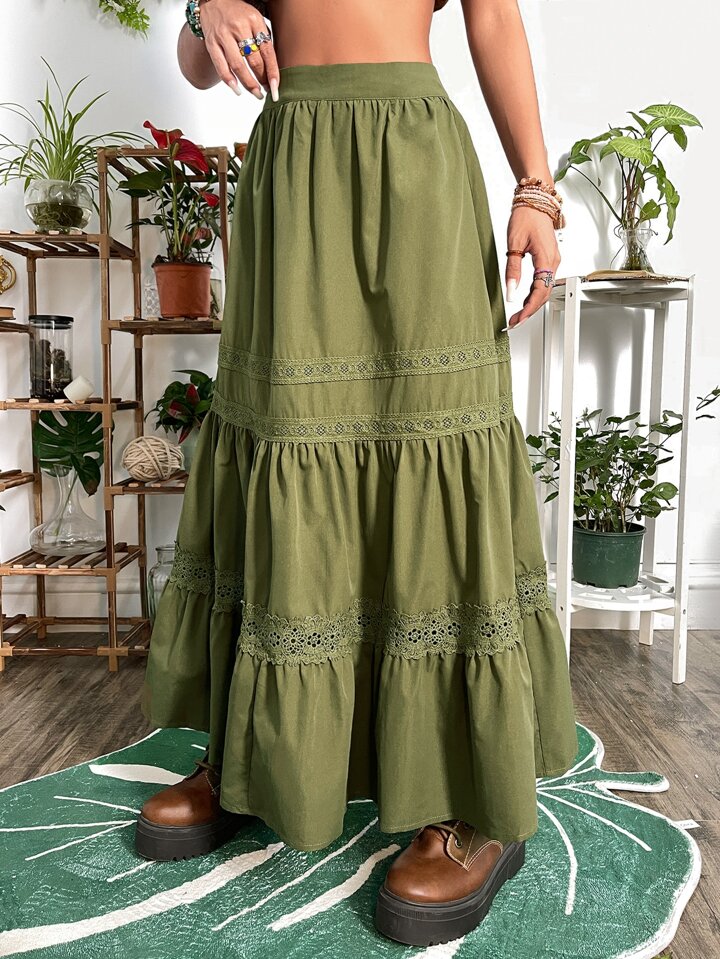 Grunge Guipure Lace Insert Ruffle Hem Skirt