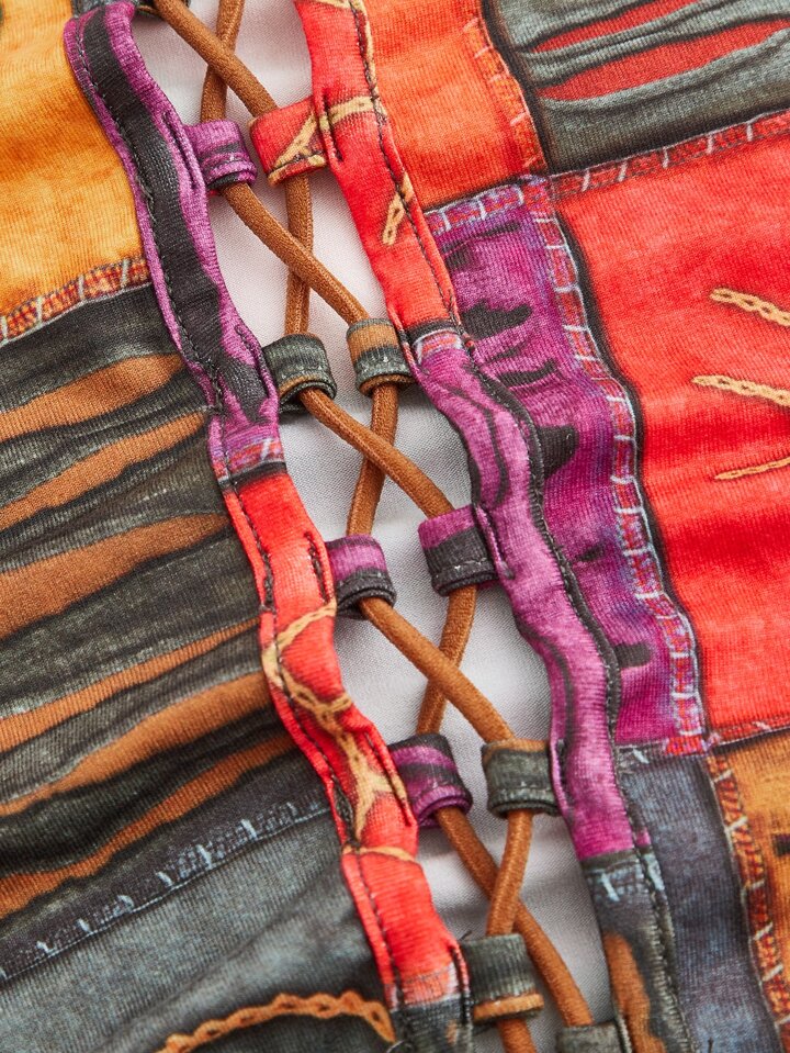 Grunge Patchwork Print Lace Up Front Crop Tee