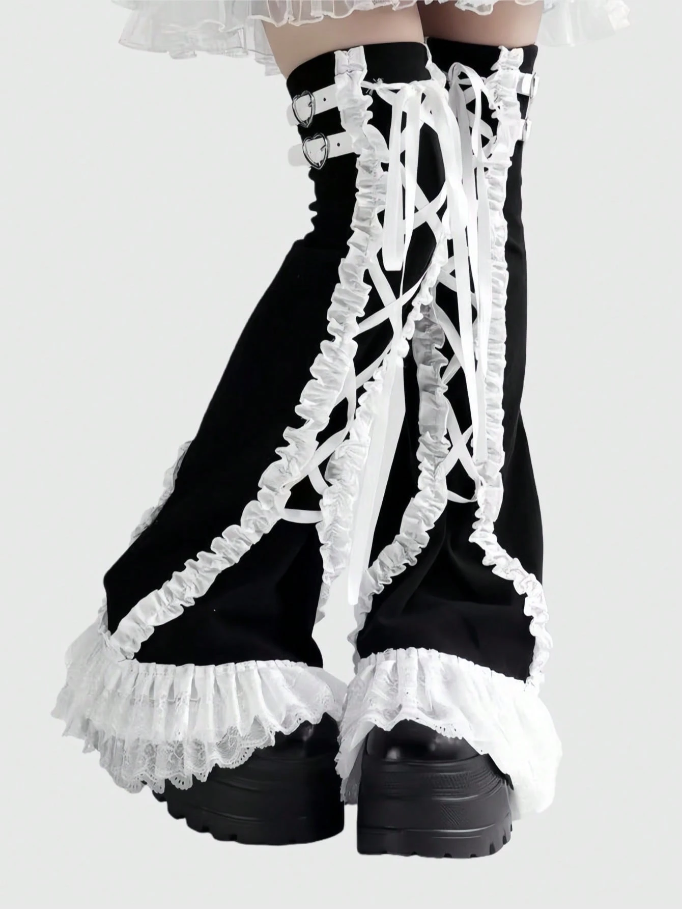 Grunge Punk 1 Pair Black & White Contrast Vintage Plaid Y2K Cute & Sweet Simple Lace Trim Thigh High Leg Warmers, Suitable For Daily Outfit, Music Festivals, Etc.