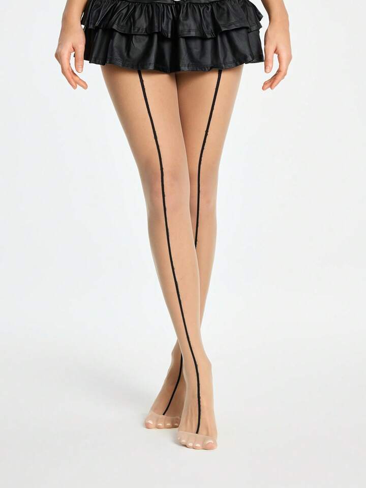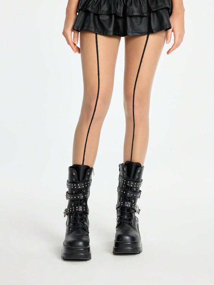Grunge Punk 1 Pair Dark Black Vertical Stripe Skin Color Stockings