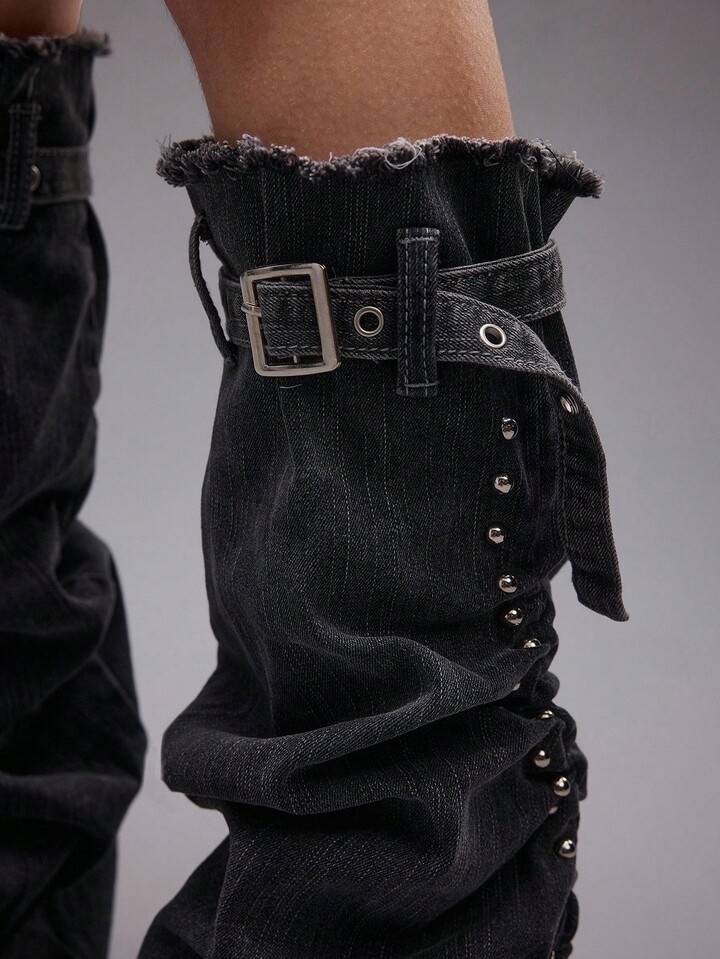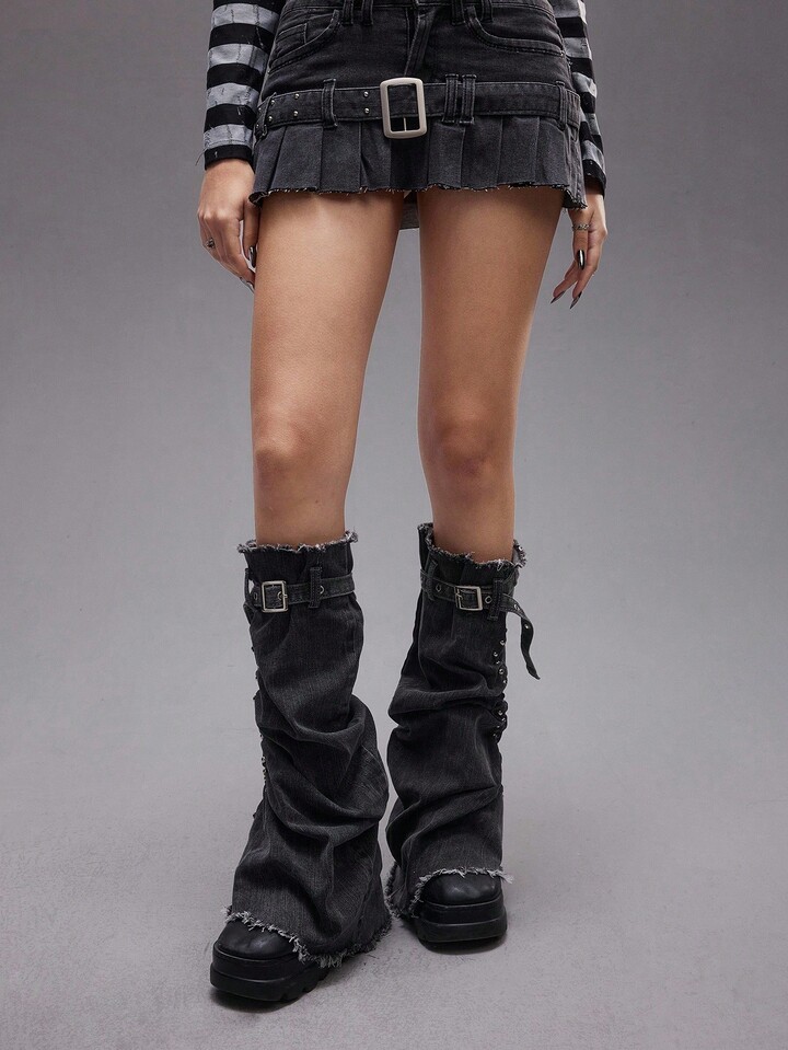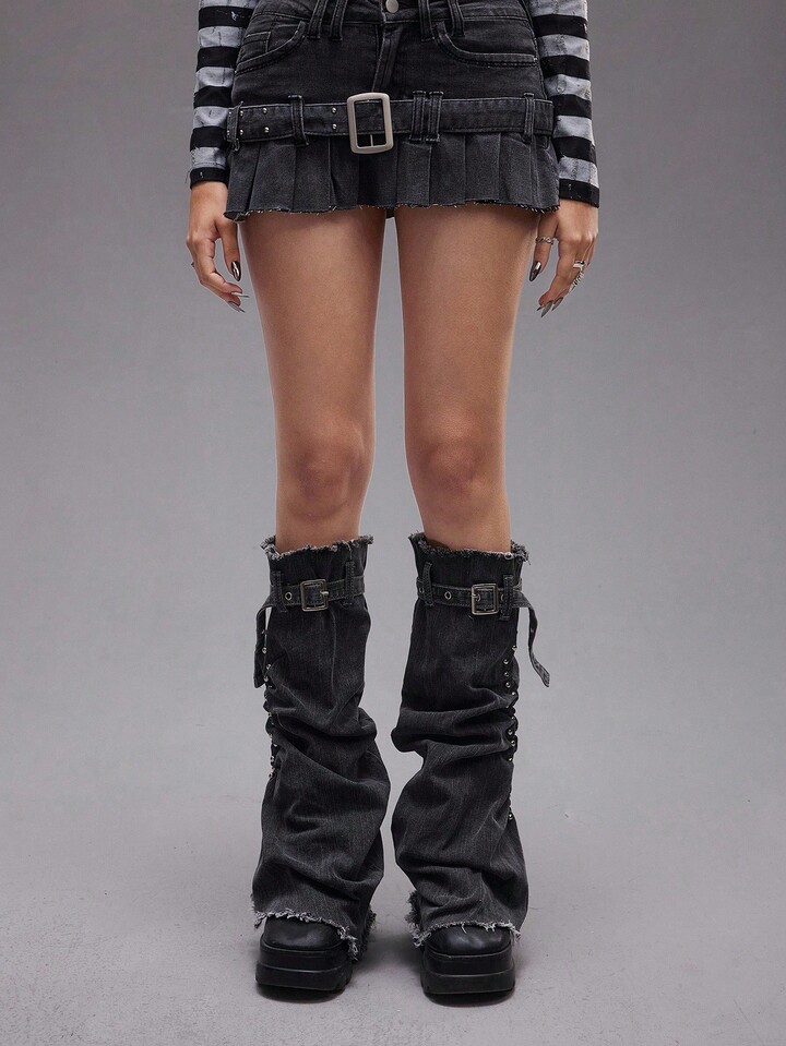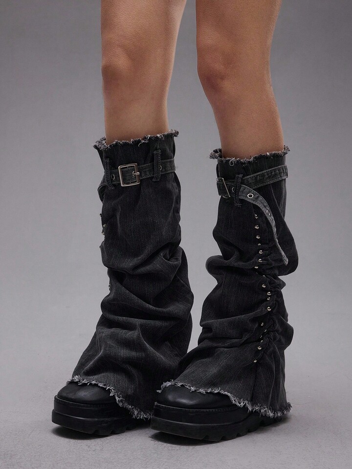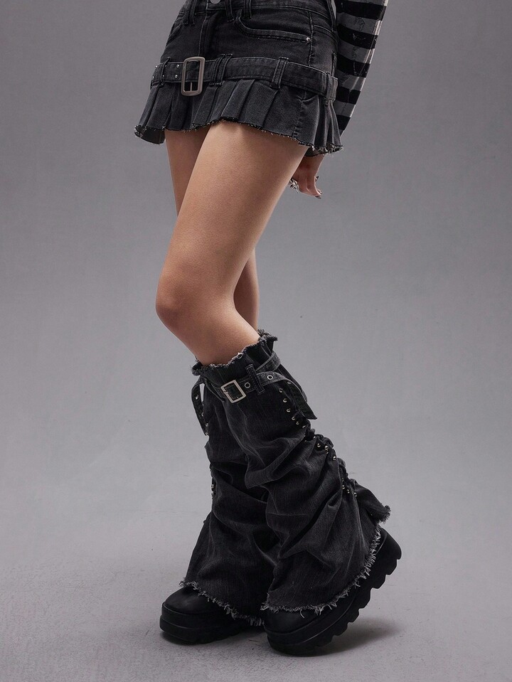 Grunge Punk 1 Pair Punk Style Elastic Ruffle Flare Leg Warmers, Y2K Lace-Up Rivet Leg Warmers, Niche Design Leg Warmers, Versatile Gothic Leg Warmers For Daily Wear
