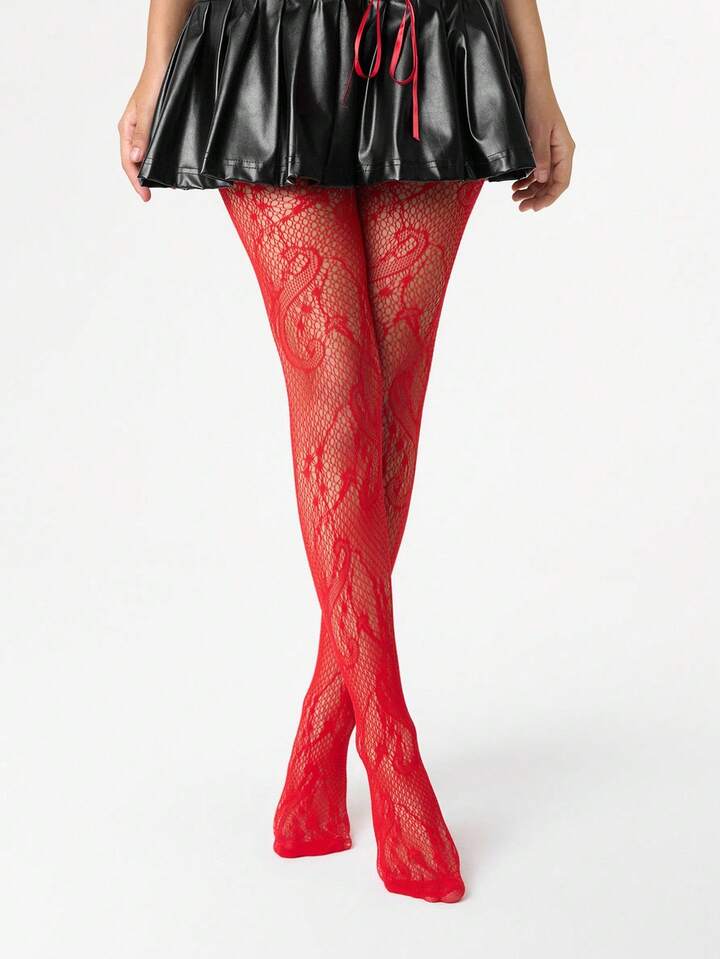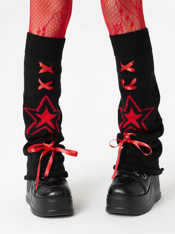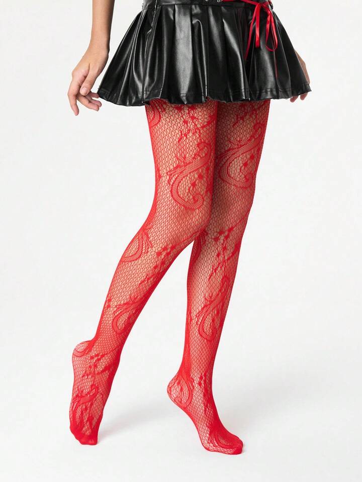 Grunge Punk 1 Pair Punk Style Tornado Pattern Red Fishnet Socks + 1 Pair Y2K Star Pattern Leg Garter, Suitable For Daily, Dance Party, Tight Fit Socks Combination