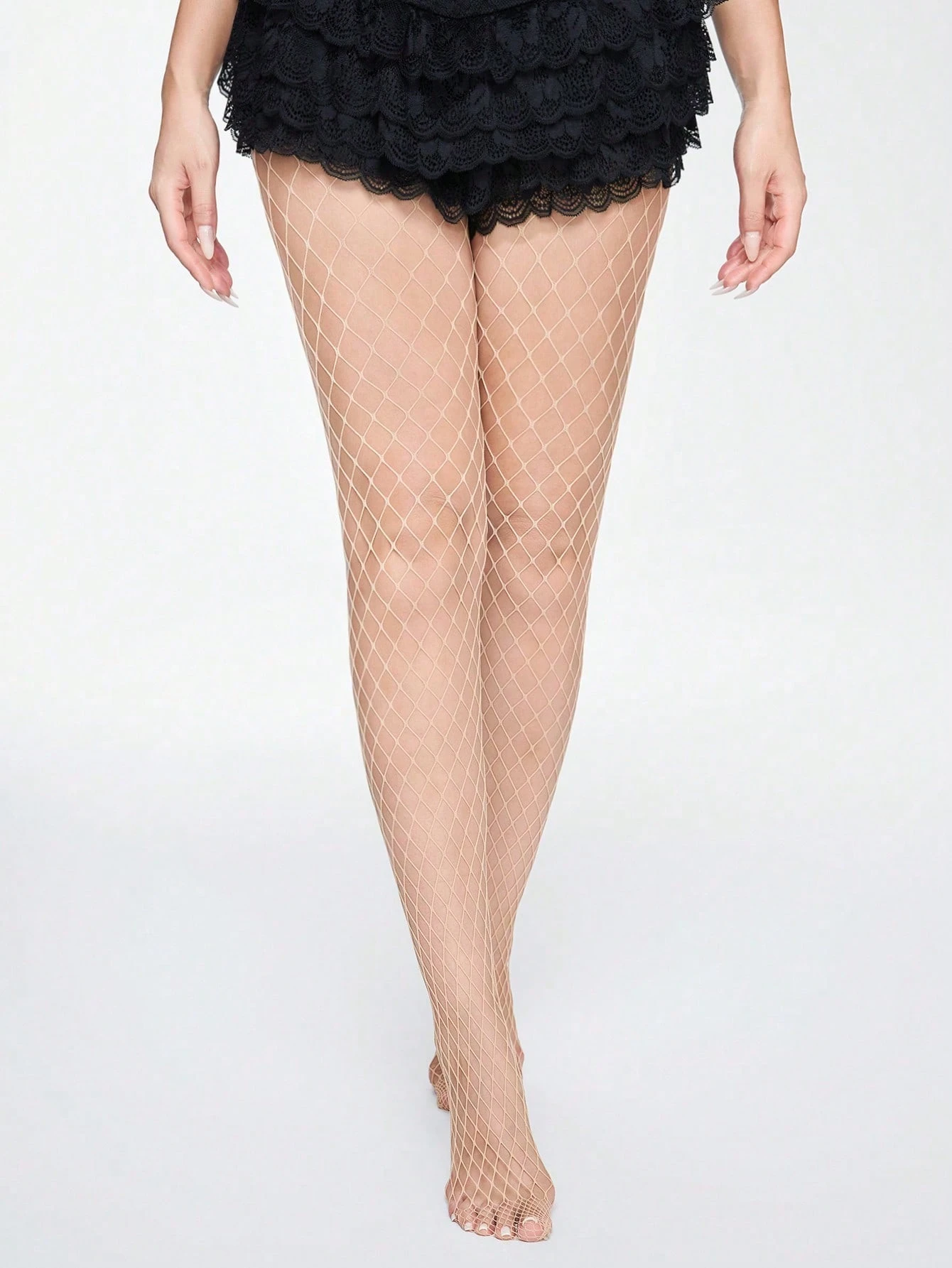 Grunge Punk 1 Pair Women's Flesh-Tone Large Fishnet Stockings, All Season Goth Style