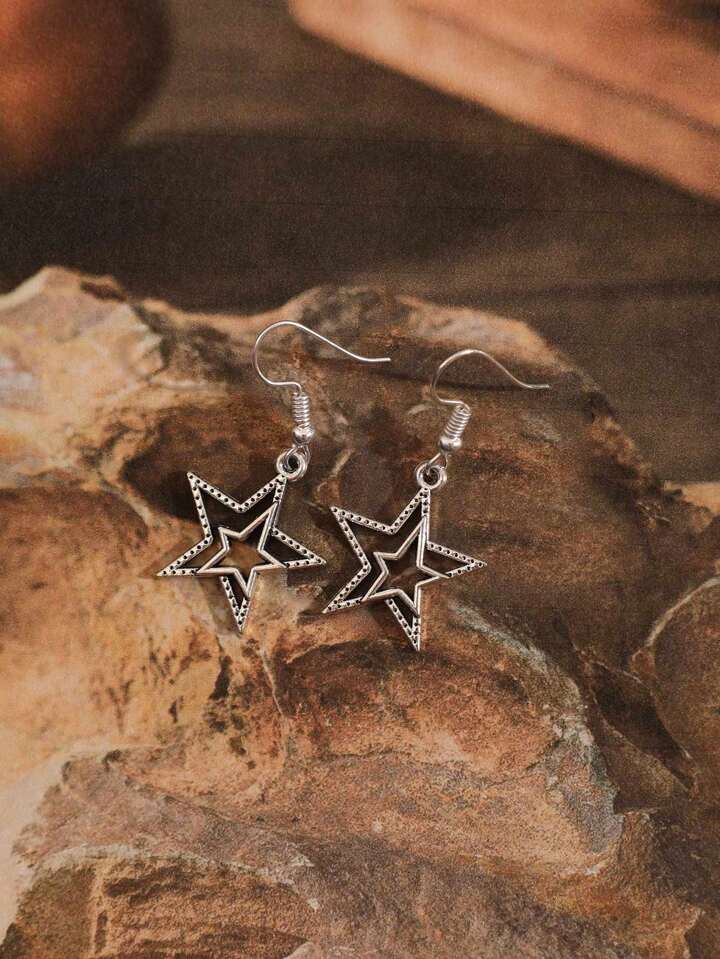 Grunge Punk 1pair Fashion Zinc Alloy Star Drop Earrings For Women For Daily Decoration