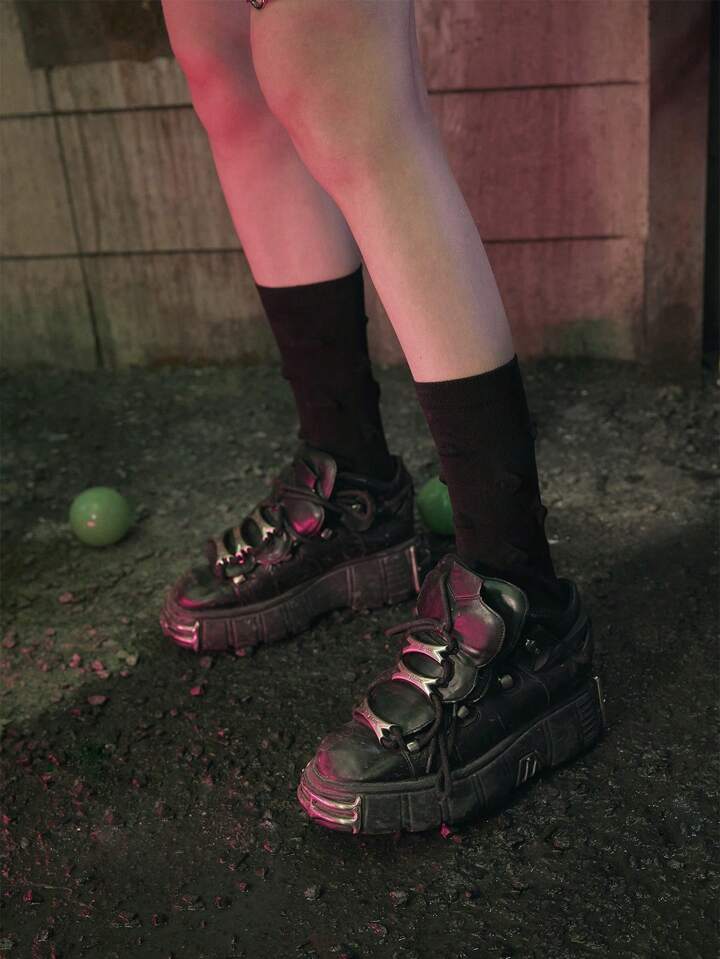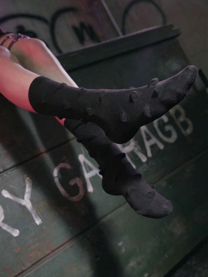 Grunge Punk 1pair Women Pom Pom Decor Fashionable Crew Socks For Daily Life