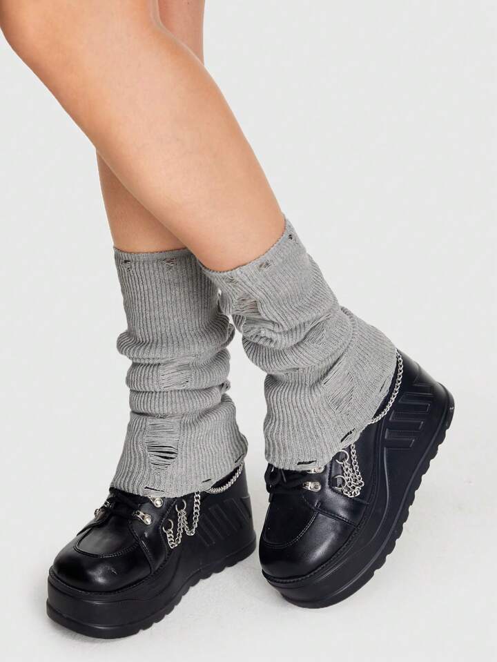 Grunge Punk 1pair Women Solid Millennium Wasteland Leg Warmers For Daily Life