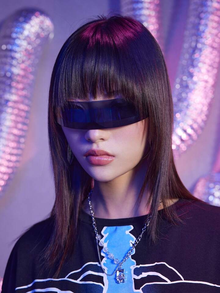 Grunge Punk 1pc Distinctive Punk Style Reflective Blue Fashion Glasses