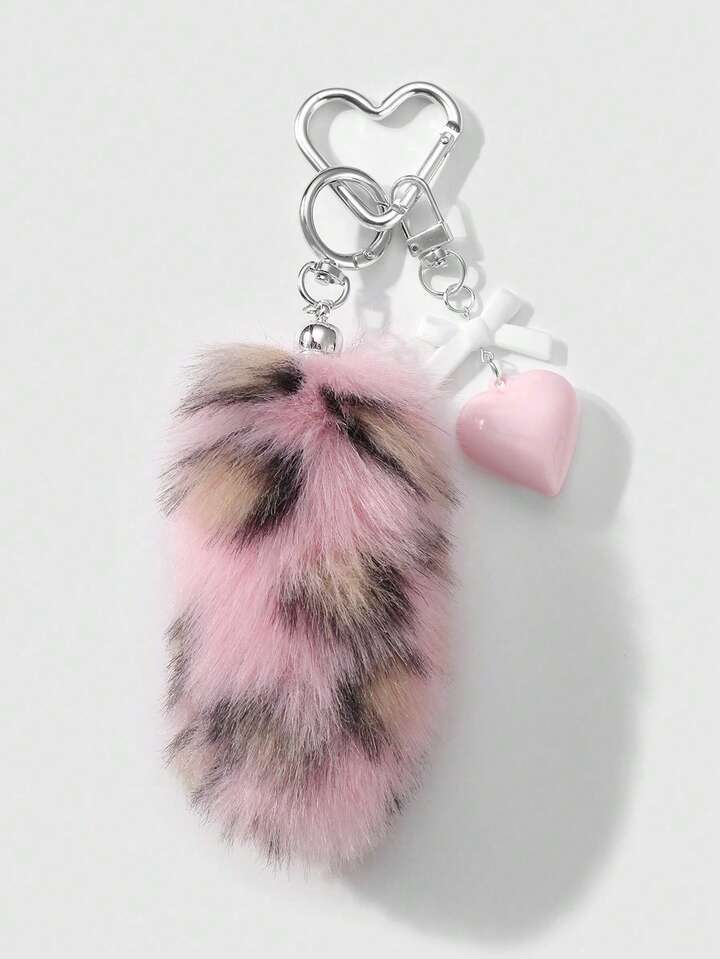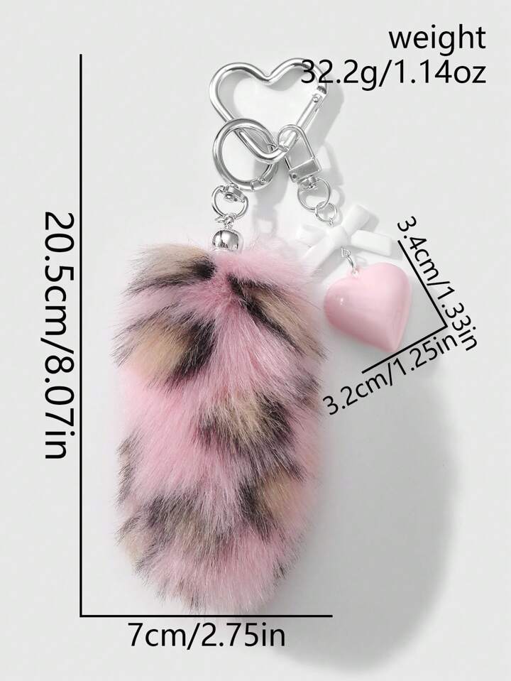 Grunge Punk 1pc Exquisite Retro Stylish High-Quality Acrylic Bowknot, Heart-Shaped, Faux Fur Leopard Print Animal Tail Keychain & Keyring, Fashionable Accessory Gift For Women