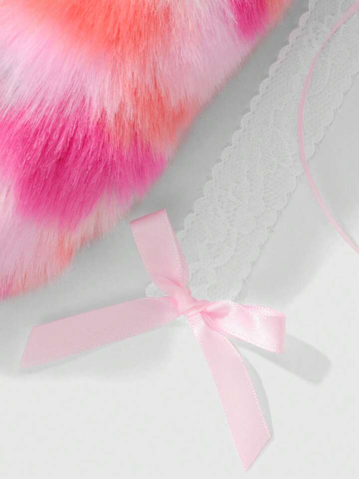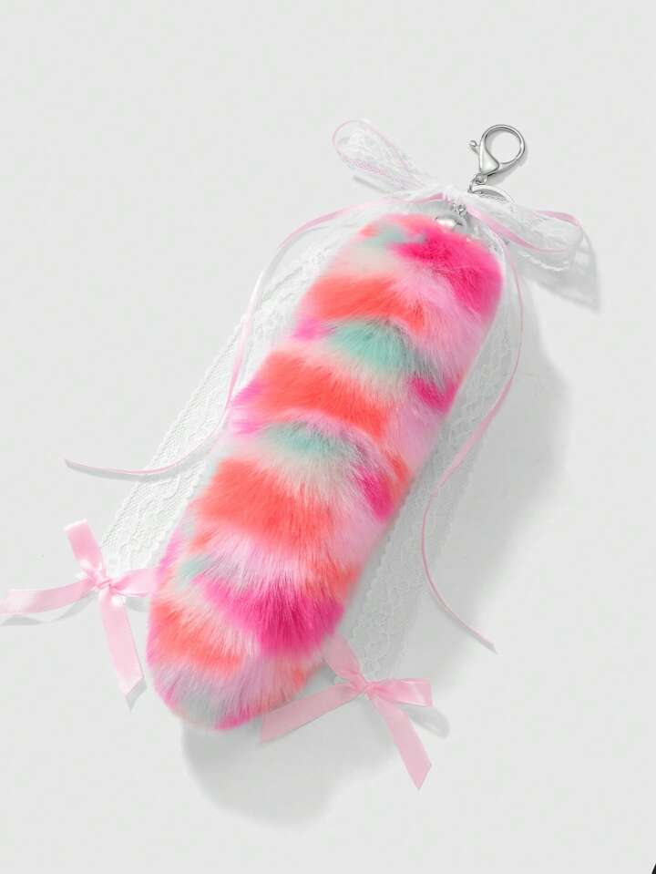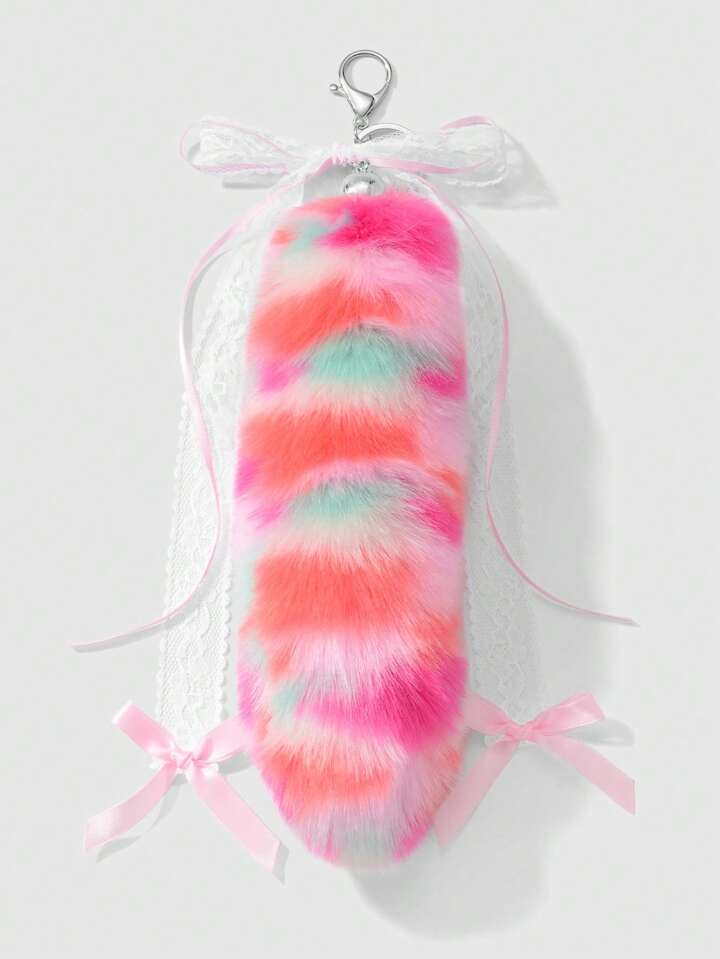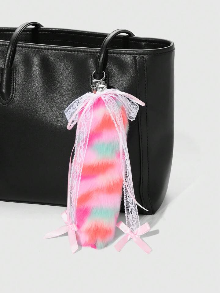 Grunge Punk 1pc Ins- Luxury Elegant Sweet High-Quality Multi-Color Faux Fur Animal Tail Tulle Bow Decor DIY Keychain & Key Ring Bag Pendant, Suitable For Women Girls Everyday Wear, Festival Gift