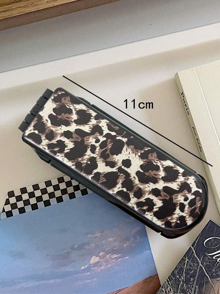 Grunge Punk 1pc Leopard Print Folding Comb With Attached Mirror, Portable Airbag Comb Back To School Accessory (Pattern Placement Random)