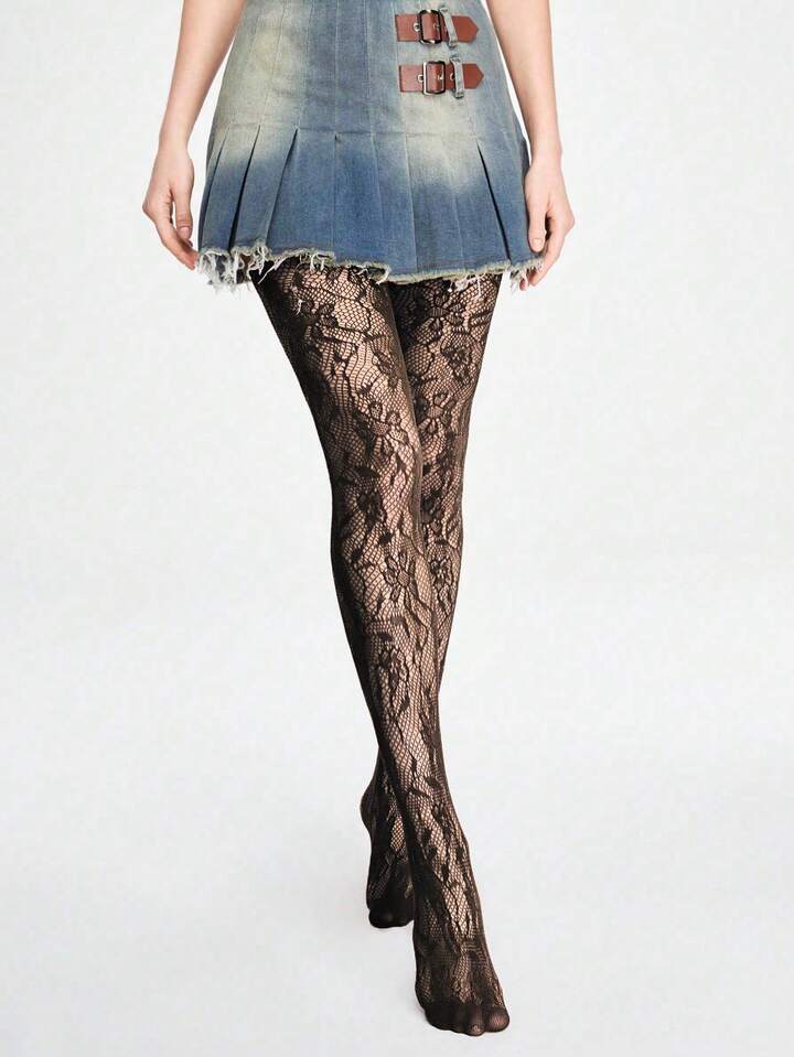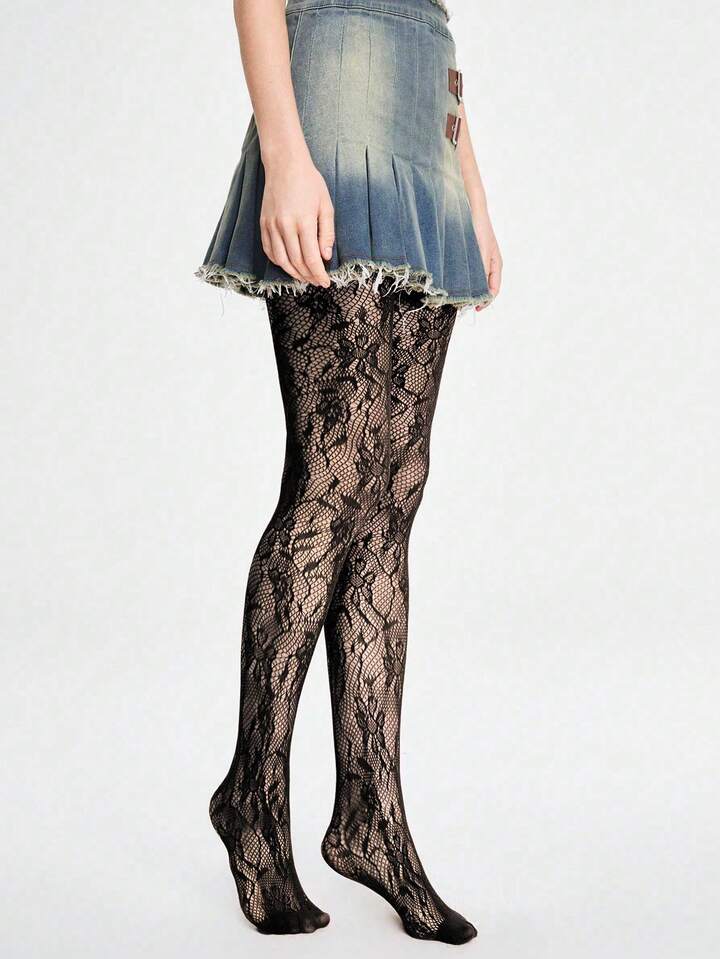 Grunge Punk 1pc Minimalist Style Tights, Thermal Lined Warm Leggings, Versatile Opaque Stretchy Skinny Pants Socks For Autumn/Winter