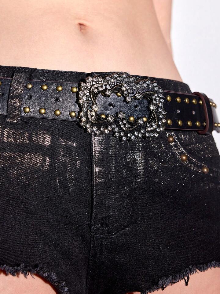 Grunge Punk 1pc Punk Style Gold Dot Rivet Belt, Y2K Vintage Chic Metal Crystal AsymmetricBuckle Leather Belt, Personalized Decorative Accessory
